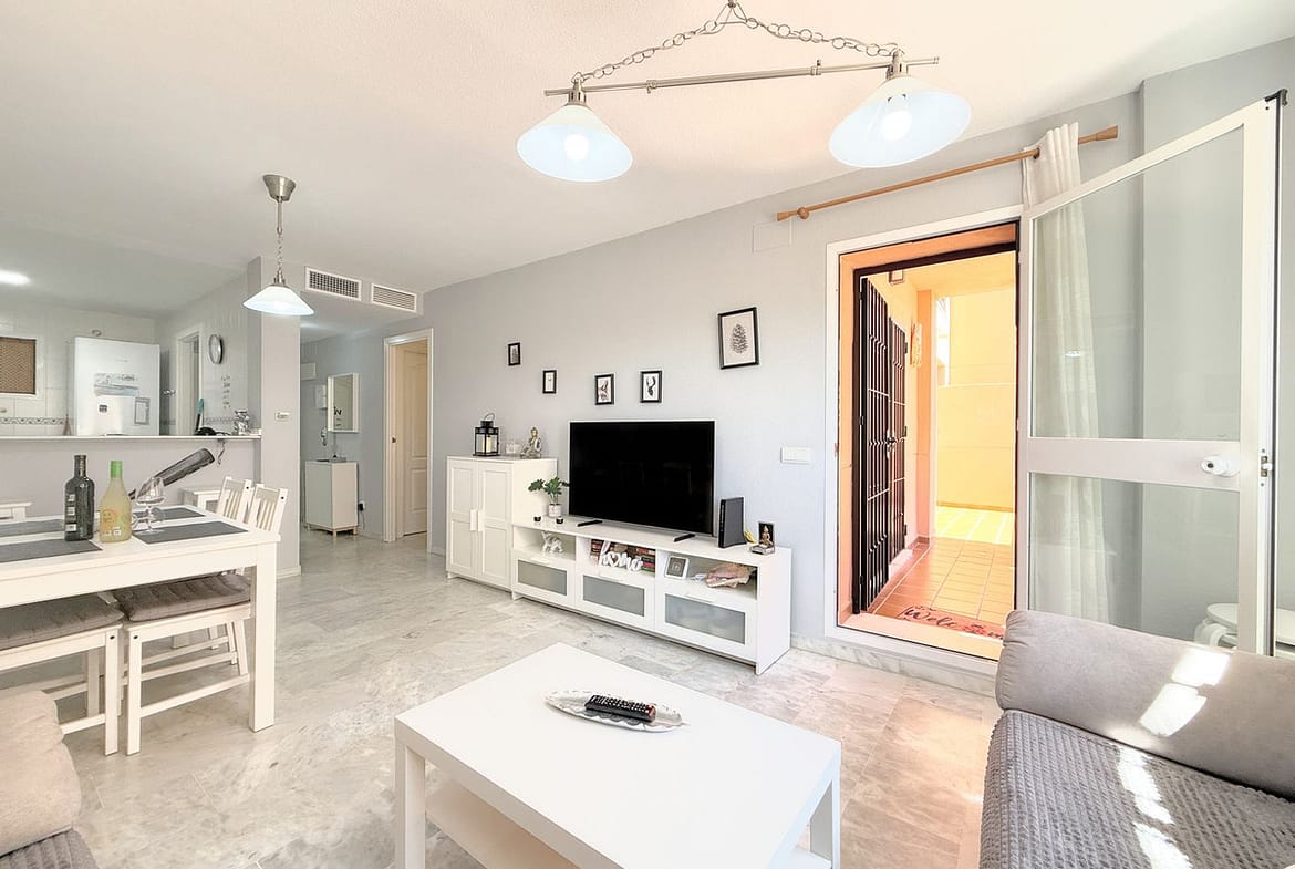 Beautiful Apartment with Spacious Terrace and Private Patio in La Duquesa With a privileged location just 400 meters from the beach and surrounded by everything you need for day-to-day living. Supermarkets, restaurants, a gym, and services are just steps away, while in only 3 minutes by car you can enjoy the charming marina of La Duquesa and in 5 minutes the prestigious Sotogrande port, both perfect for strolling by the sea and experiencing the unique atmosphere of the Costa del Sol. A location that combines peace and quiet with the convenience of having everything close at hand. This bright and welcoming ground-floor property offers a large terrace alongside a generous private patio with a barbecue area—perfect for enjoying pleasant evenings outdoors all year round, thanks to the area’s exceptional microclimate. Facing south, it receives abundant natural light, creating a warm and comfortable atmosphere. It features two bedrooms and two bathrooms, stylishly presented and in excellent condition, ready to move into or enjoy as a holiday home. The charming residential complex, full of potential, is a small oasis of relaxation with a spectacular communal pool, beautifully maintained gardens, and a children’s play area. In addition, the property has a valid tourist license and an excellent rating on vacation rental platforms, making it an attractive option both for those seeking a second home and for those wishing to continue with a profitable investment. Don’t miss the opportunity to visit and discover for yourself all the advantages that make this a unique choice on the Costa del Sol.