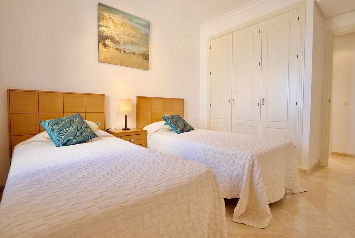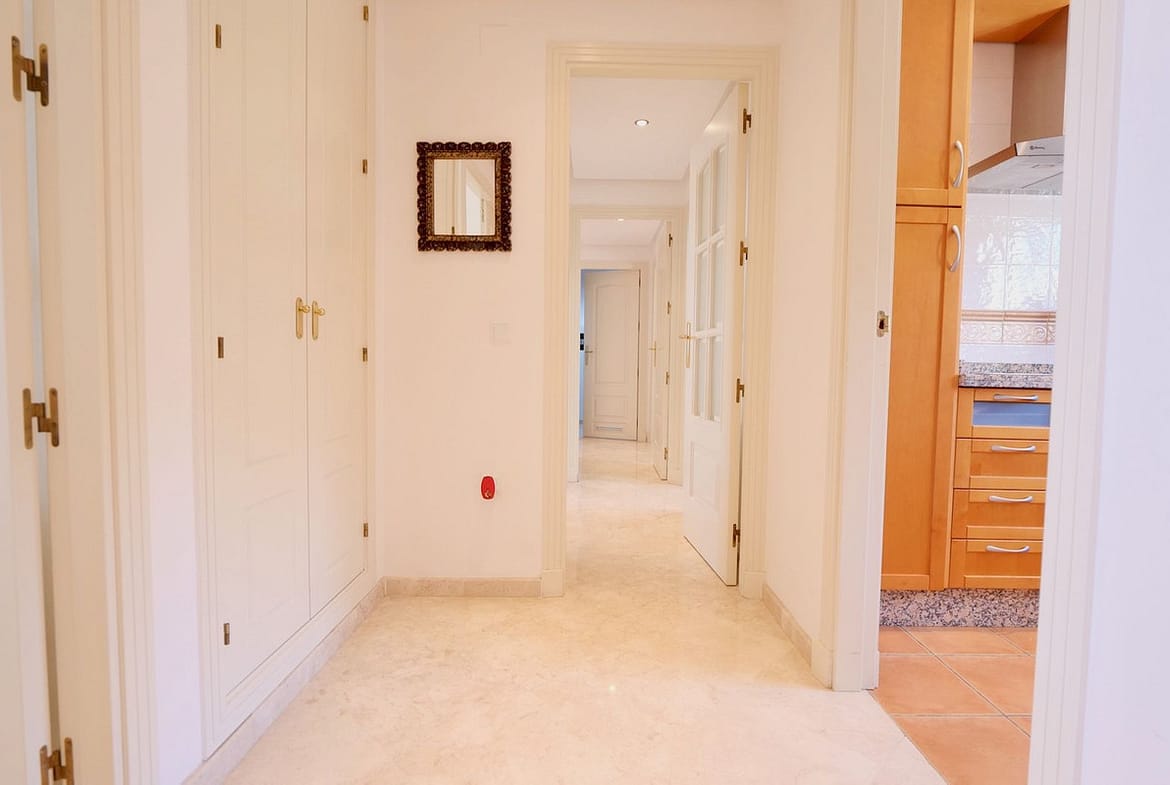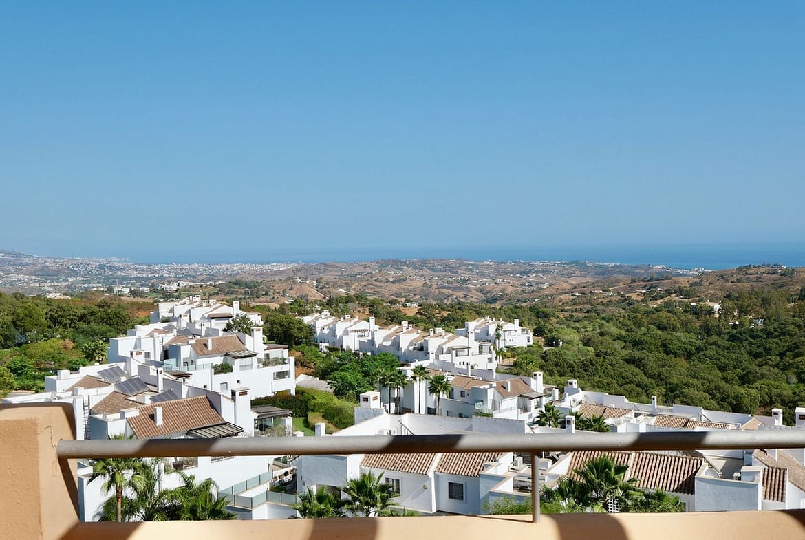 This excepcional two bedroom top floor apartment is located in a gated complex in La Mairena. ann elevated area located in the hills above the beaches of Elviria and East Marbella. The residents of La Mairena enjoy low density relaxed living in natural surroundings. The area has a number of renowned complexes, high end luxury villas of enjoying amazing views. The apartment itself has hot and cold air-conditioning , high quality marble flooring, a granite worktop in the kitchen and a larger than average living room and a good sized terrace with amazing sea view, mountain and coastal view. Included in the price is a very useful private store room annd a private covered parking space. The complex has community gardens, swimming pools and even paddle tenis courts available for its owners.