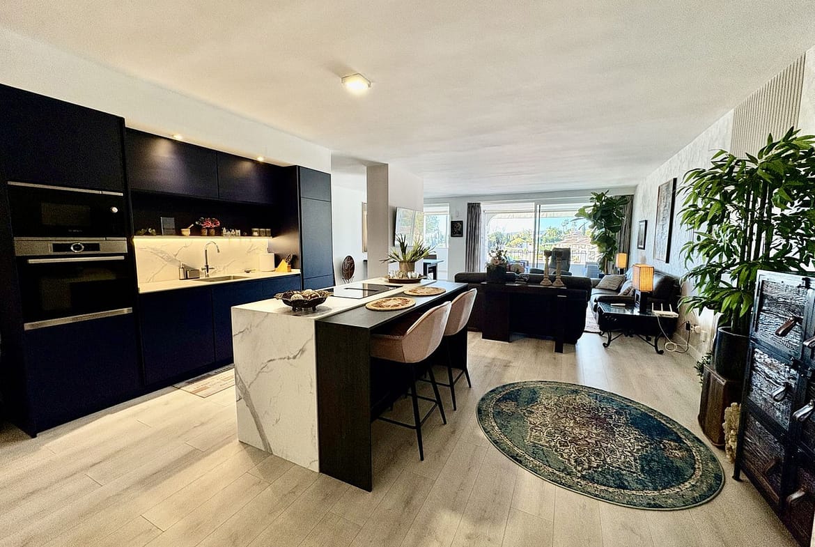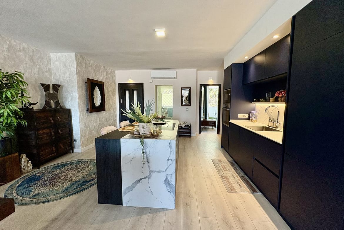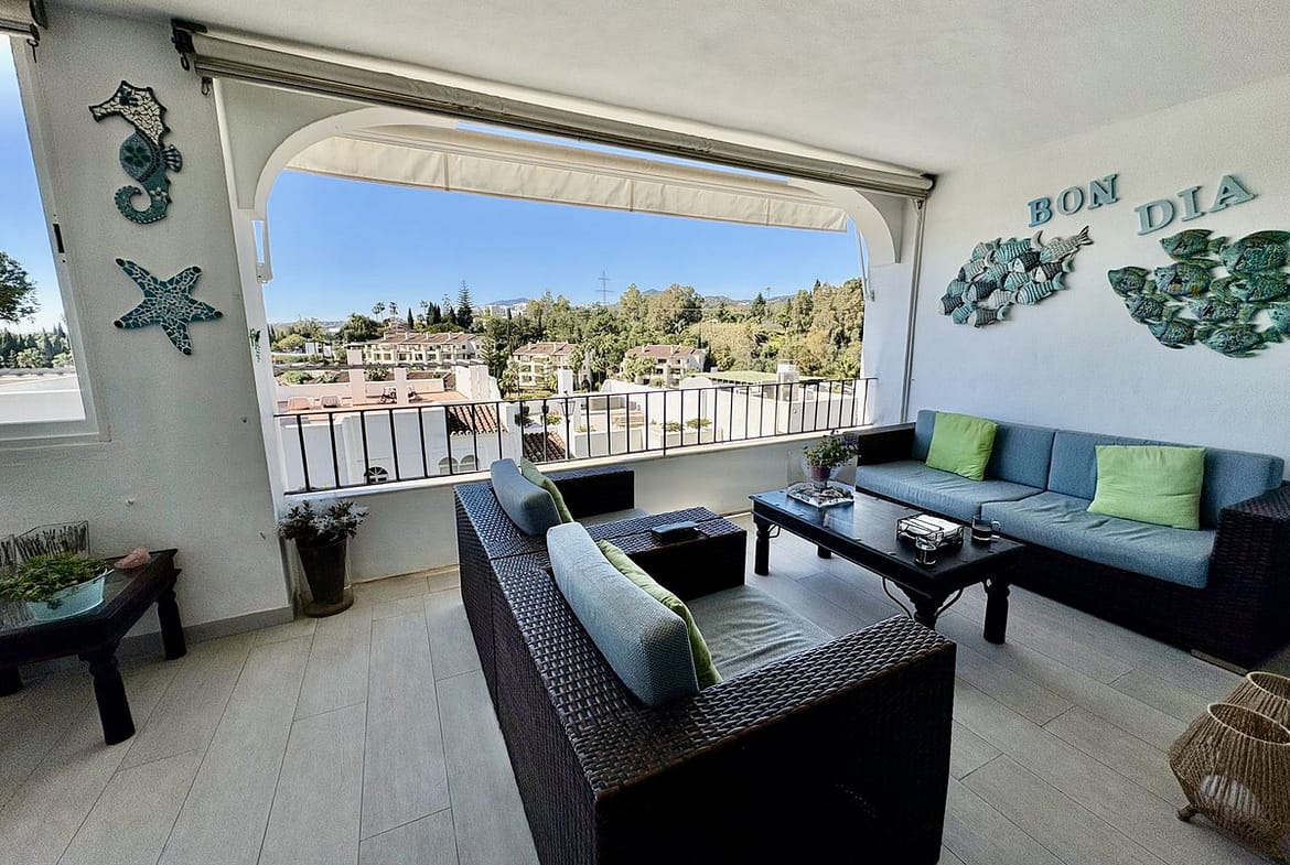 Modern and spacious apartment for sale in the sought after community of Balcones de la Quinta. The apartment has been beautifully renovated and is presented immaculately as a 2 bedroom 2 bathroom apartment but could easily be converted into 3 bedrooms given the square metres and ample space it offers. The community is gated and features 2 large swimming pools, well manicured gardens with views onto La Quinta Golf Course and covered parking spaces for residents.