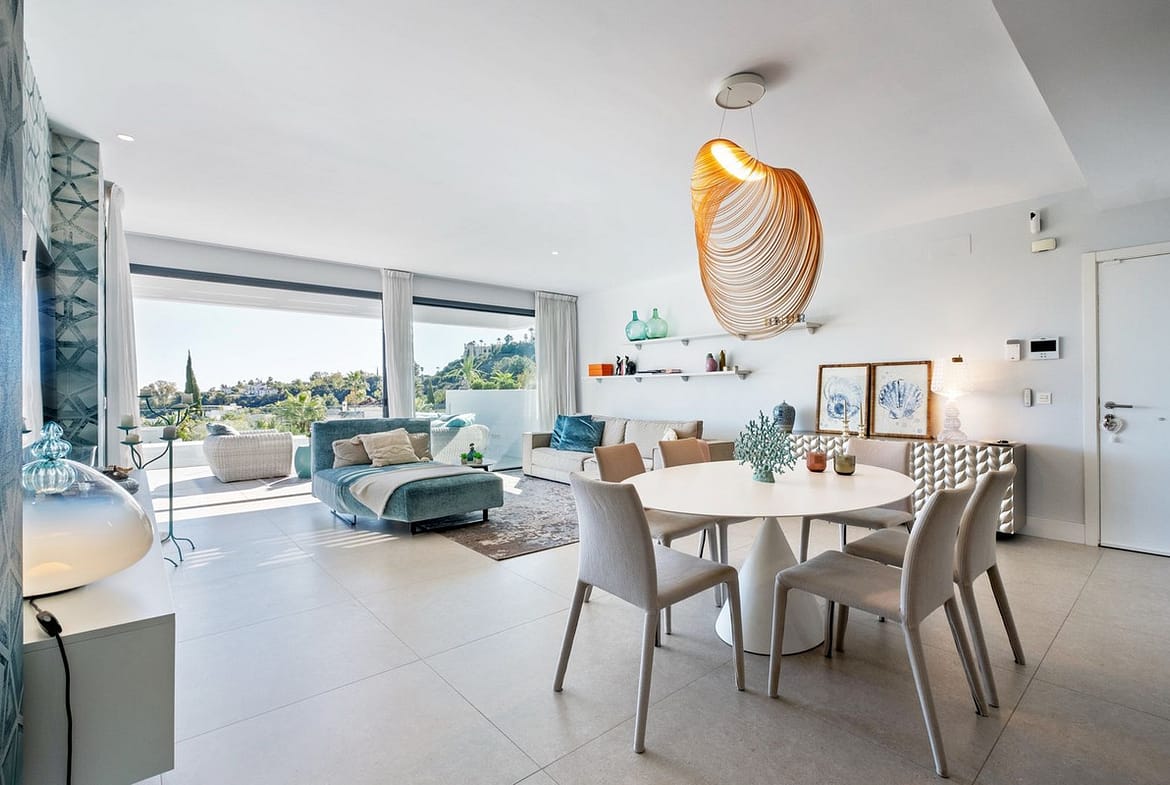 This well presented two-bedroom, two-bathroom apartment is located in the sought-after Aqualina development, in the heart of Marbella’s Golf Valley. The property offers 112 m² of interior living space and a generous 43 m² private terrace with open sea views, making it ideal for both everyday living and holidays.
