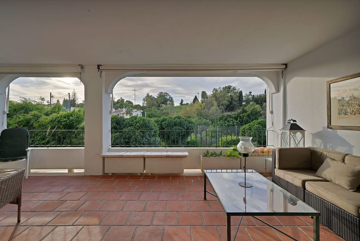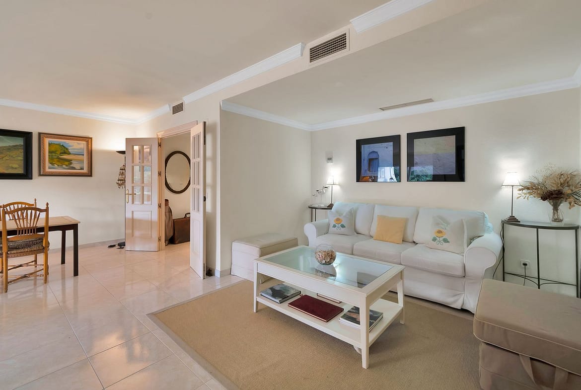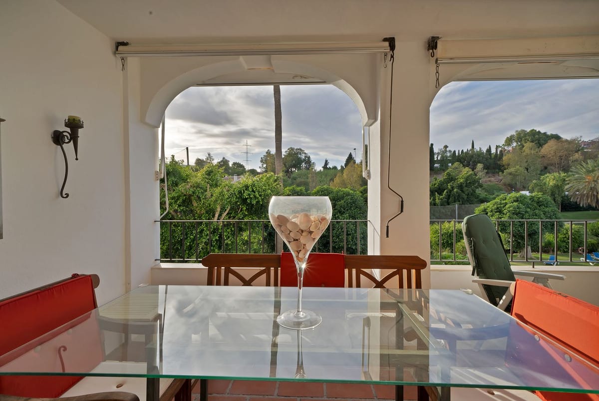Magnificent first-floor apartment located in La Quinta, Benahavis. This two-bedroom, two-bathroom property is situated on the first line of the golf course in Balcones de La Quinta, a gated community with two swimming pools. Due to its generous size and layout, a third bedroom could easily be added. It features air conditioning, electric blinds, a fireplace, and a large terrace with golf course views.