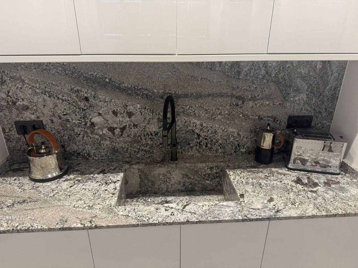 This elegant 2-bedroom, 2-bathroom apartment has been completely renovated this year, offering a modern, functional style and ready to move into. The renovation includes new electrical wiring, new plumbing, and new air conditioning units, ensuring comfort and efficiency throughout the year. The kitchen stands out for its marble countertops and sink, adding a touch of luxury and durability.