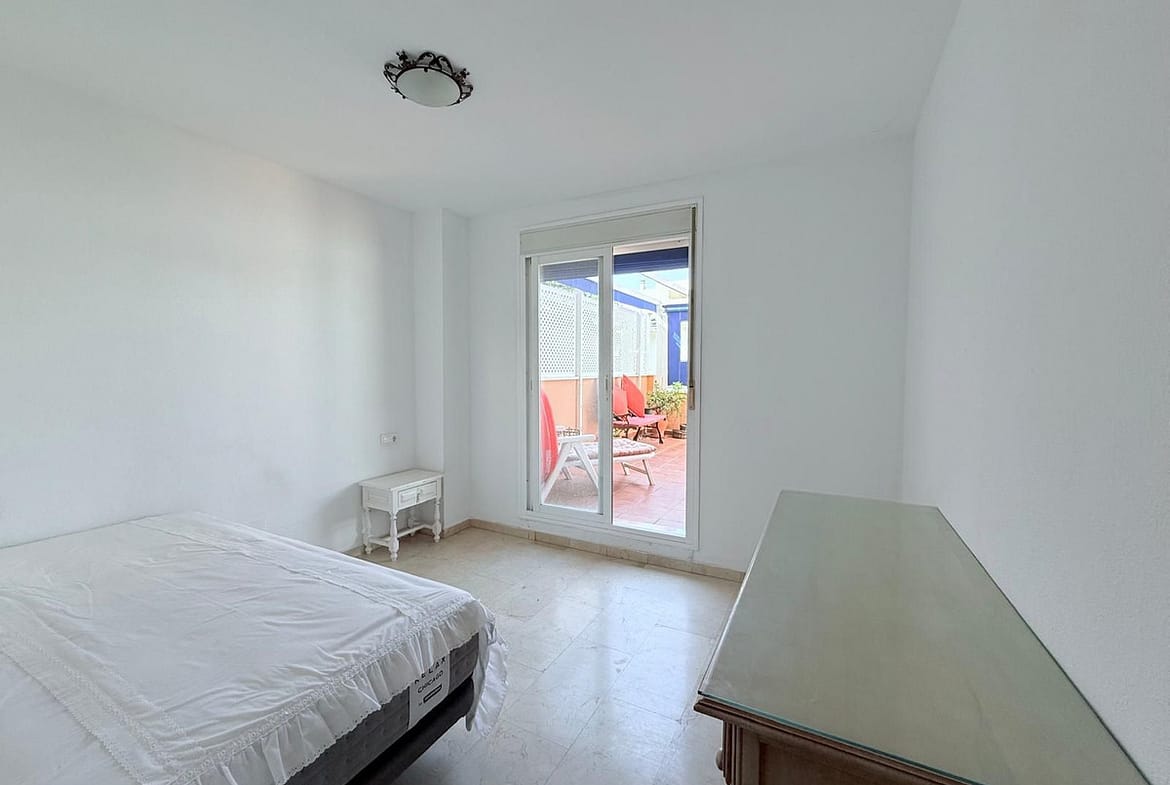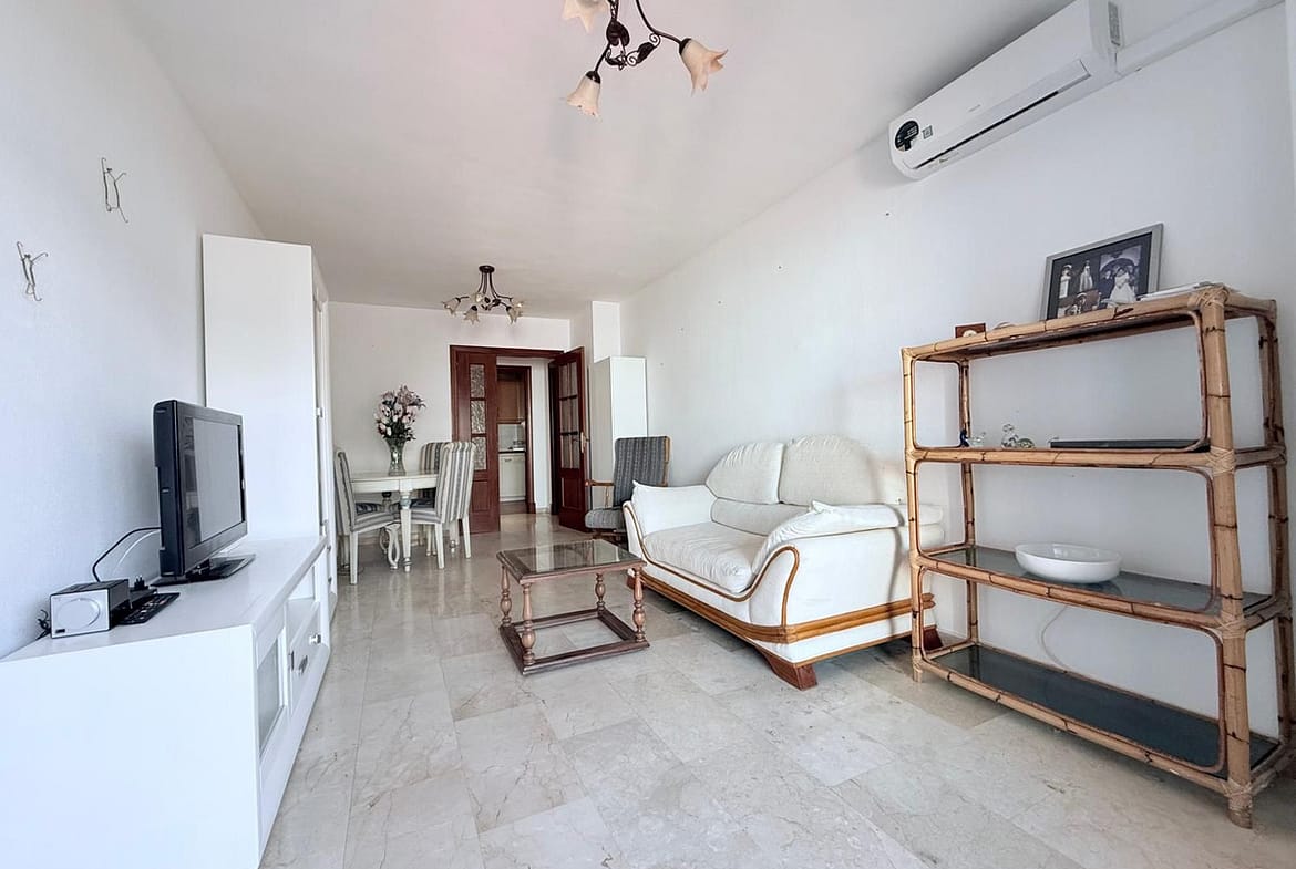 Accommodation includes two double bedrooms with fitted wardrobes, a modern bathroom with shower, and the property is finished with a bright, airy feel throughout. Recently installed air conditioning in the lounge ensures comfort in every season.