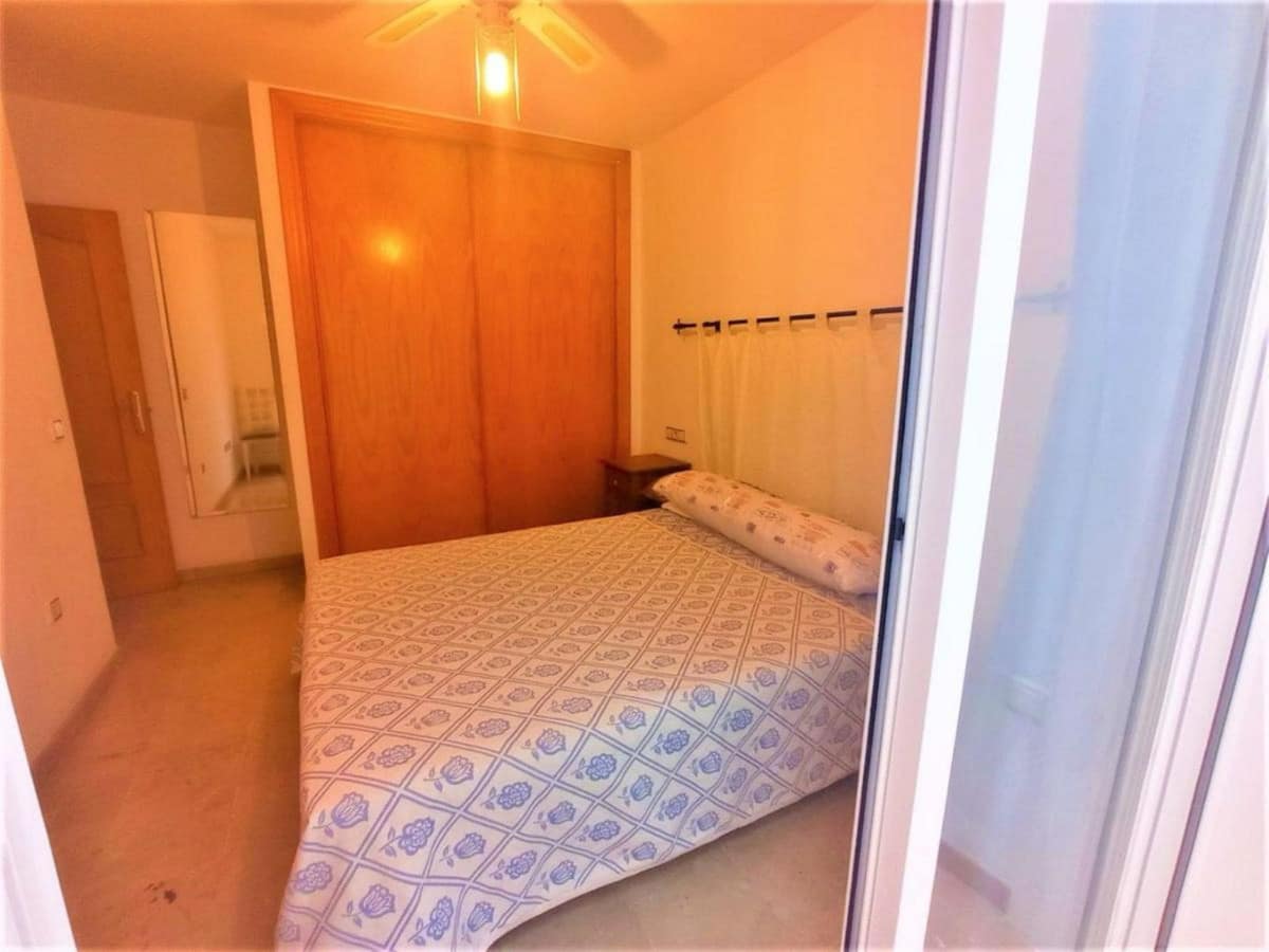 The property features a master bedroom with a built-in wardrobe, a junior bedroom, and a private patio. The walls have a smooth finish, the floors are marble, and the windows are double-glazed. It is located on the first floor and has elevator access.