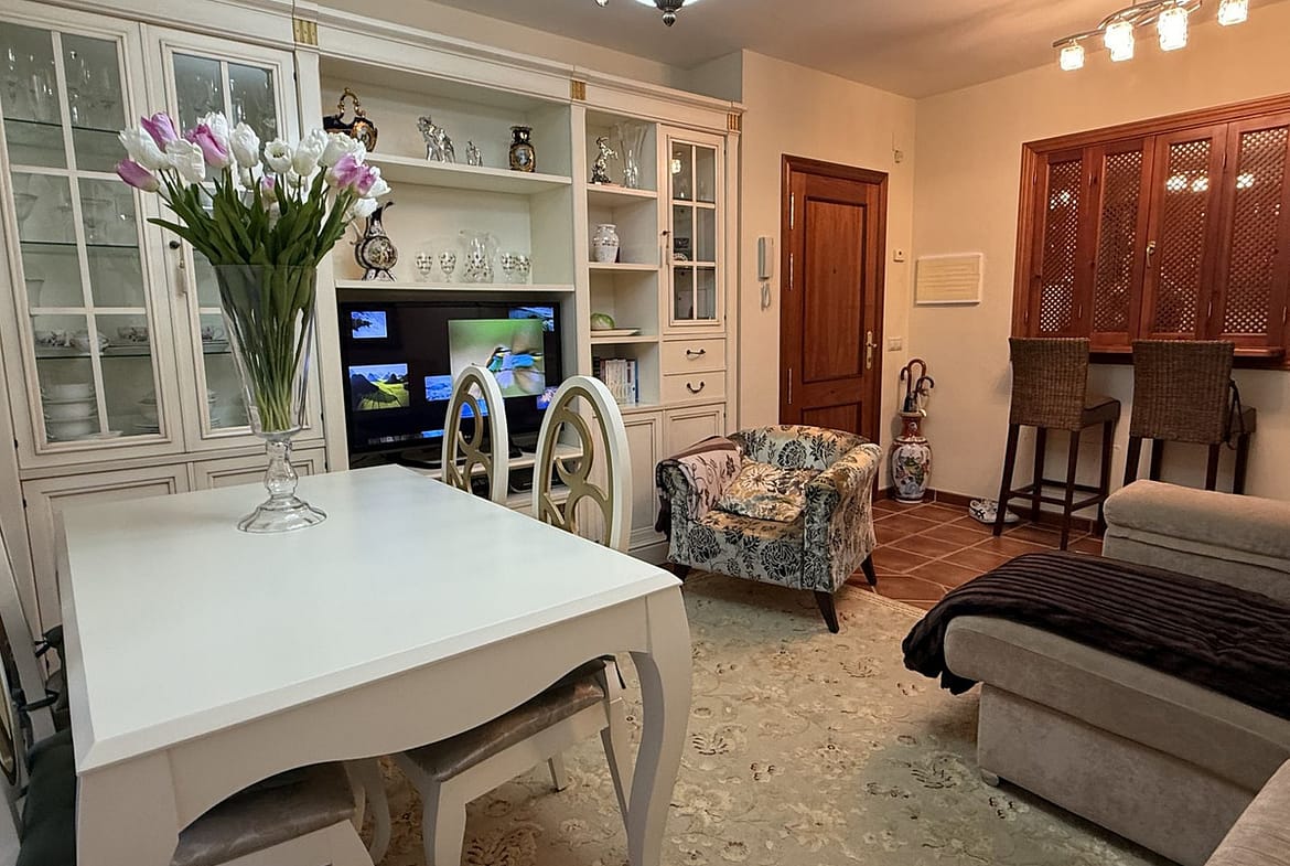 The apartment is sold fully furnished and equipped, including everything inside the property, except for personal belongings.