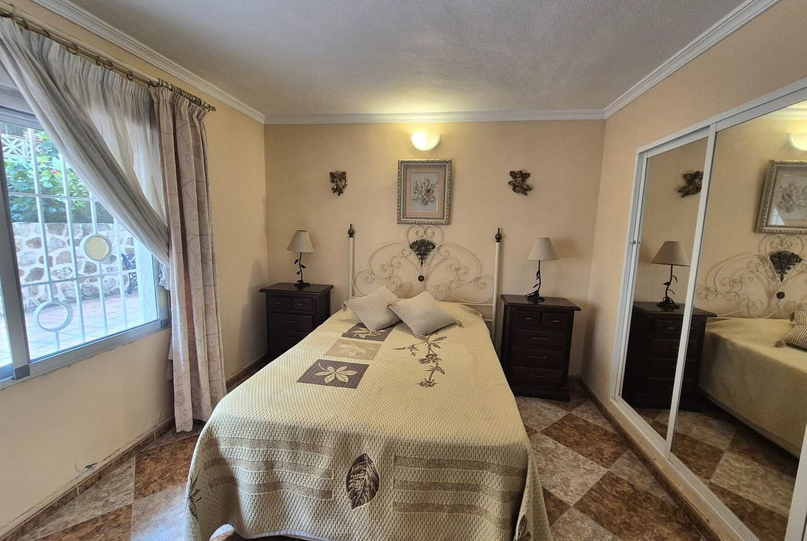 There are 3 accesses to the urbanisation via peatonal gates, the corner property consists of a lounge/dining room, separate fully fitted kitchen, 2 bedrooms and a bathroom. The master has air conditioning hot and cold. There is a lot of storage in the fitted wardrobe in main bedroom as well as in the bathroom. You can use the front of the property and also at the back for sitting out in the sun.