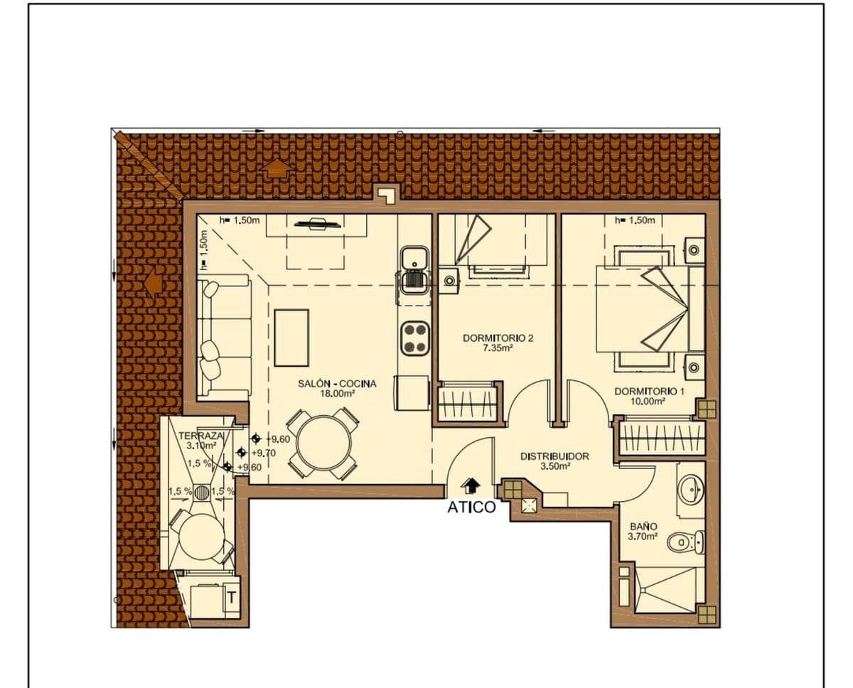 Penthouse in the heart of Los Boliches, just a few meters from the beach and the commuter train station.