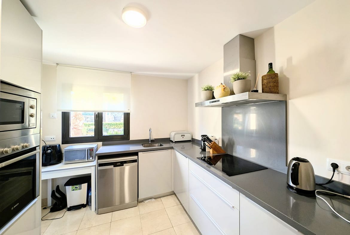 This beautifully furnished 2-bedroom apartment is located in the prestigious complex of Hoyo 19, within the exclusive Los Flamingos Golf Resort in Benahavis. The apartment offers a perfect blend of comfort and luxury, featuring hot and cold air conditioning, elegant marble floors, and a spacious master bedroom with an en-suite bathroom and fitted wardrobes. The fully fitted kitchen is ideal for preparing meals, and the property includes secure underground parking with direct lift access, providing convenience and privacy.