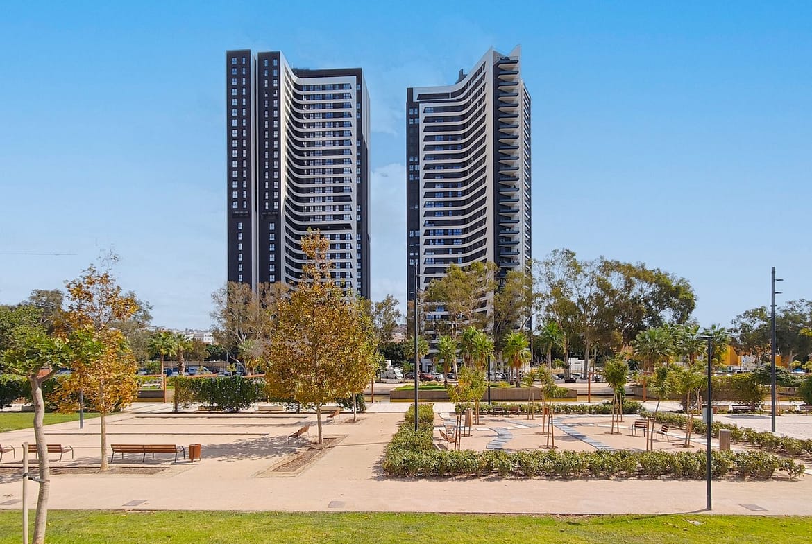 Exclusive, modern apartment in the new development Urban Sky located in Torre de Martiricos, Málaga. An amazing 30 storey avant-garde building which includes all the latest technology. Incredible, panoramic views from the solarium terrace and pool area from the very top of the building. On the ground floor there are excellent community areas including a co-working area, gym, cinema and kids playroom creating the perfect blend for an unrivalled and vibrant lifestyle in the heart of Málaga.