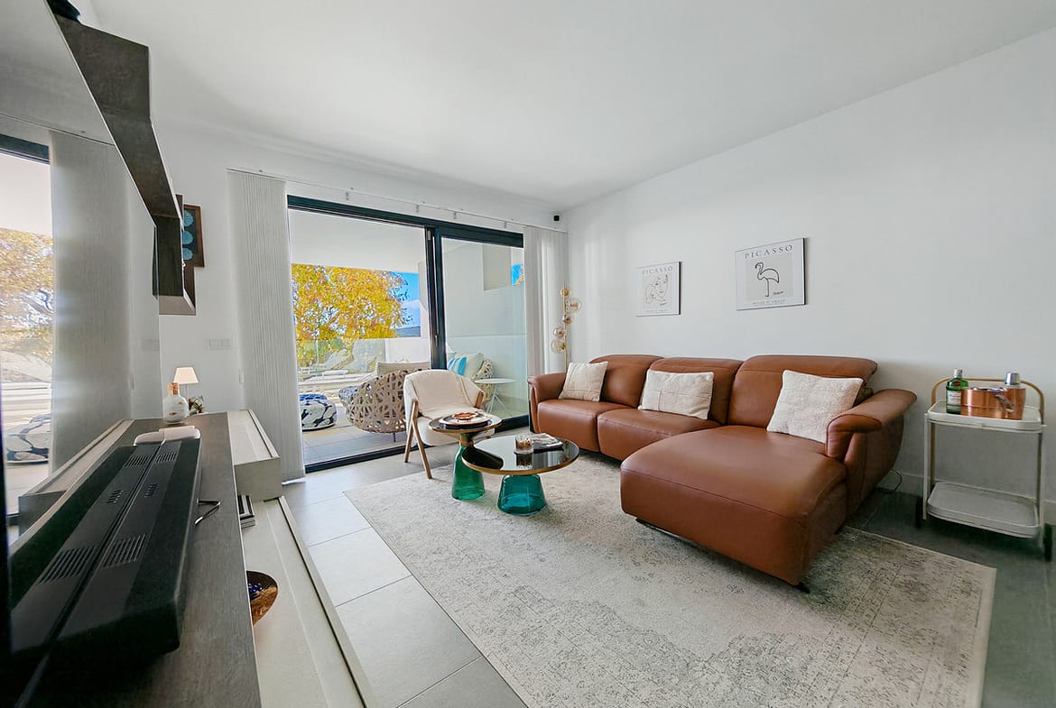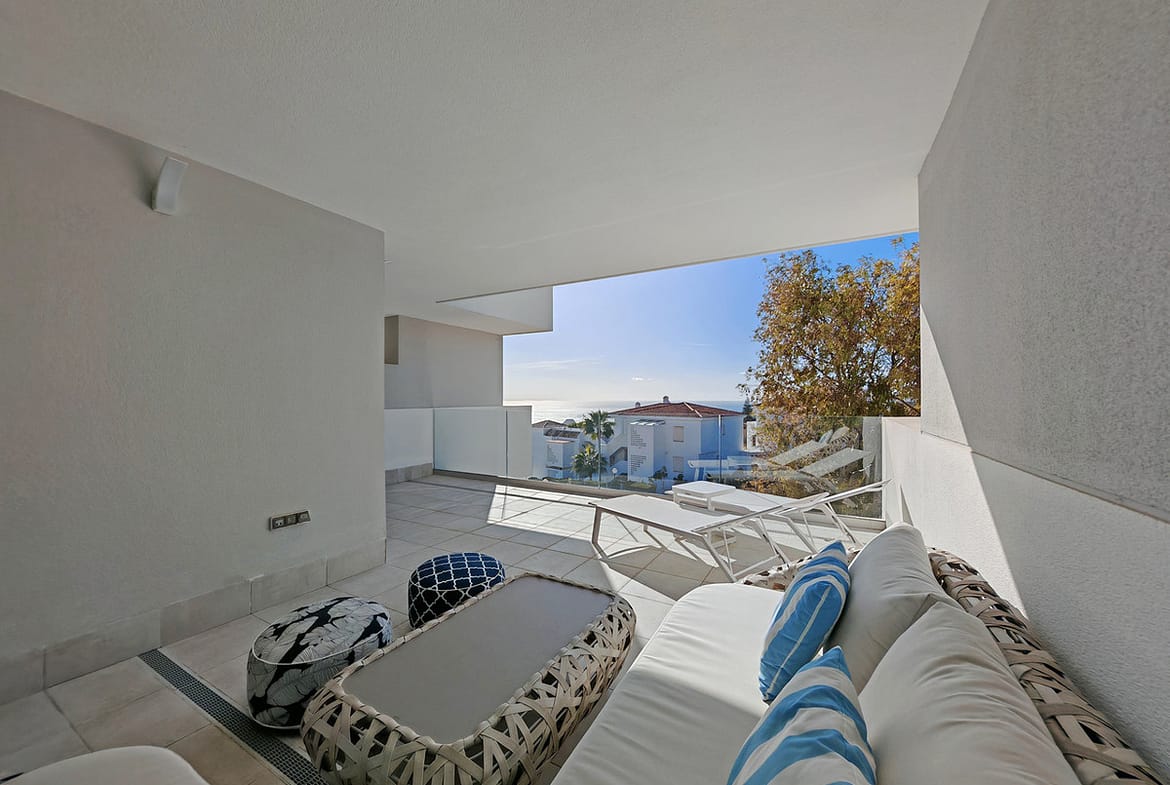 Apartment for sale in , Manilva with 2 bedrooms, 2 bathrooms and with orientation south, with communal swimming pool and private garage (1 parking spaces). Regarding property dimensions, it has 87 m² built and 29 m² terrace. Has the following facilities amenities near, transport near, air conditioning, fully fitted kitchen, utility room, sauna, storage room, gym, alarm, security entrance, double glazing, private terrace, kitchen equipped, sea view, laundry room, internet – wi-fi, covered terrace, electric blinds, fitted wardrobes, gated community, lift, close to sea / beach, close to golf, uncovered terrace, games room, glass doors, balcony, optional furniture, spa, wheelchair-accessible, excellent condition, close to shops, close to town, close to port, close to schools, surveillance cameras and pets allowed.