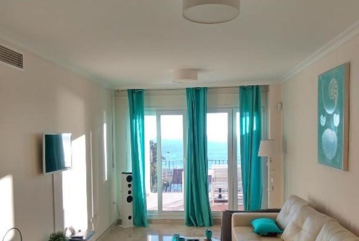 This cosy apartment features two bedrooms, two bathrooms, fully fitted kitchen and a living room leading onto its private terrace with glass curtains from where you can enjoy its spectacular sea views.