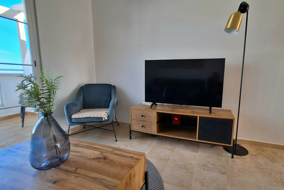 The flat, which is being sold fully furnished, has two bedrooms, a bathroom, a toilet-laundry room with the option of a shower, a fully equipped open-plan kitchen opening onto the living room and two terraces. There is also an outdoor parking space.