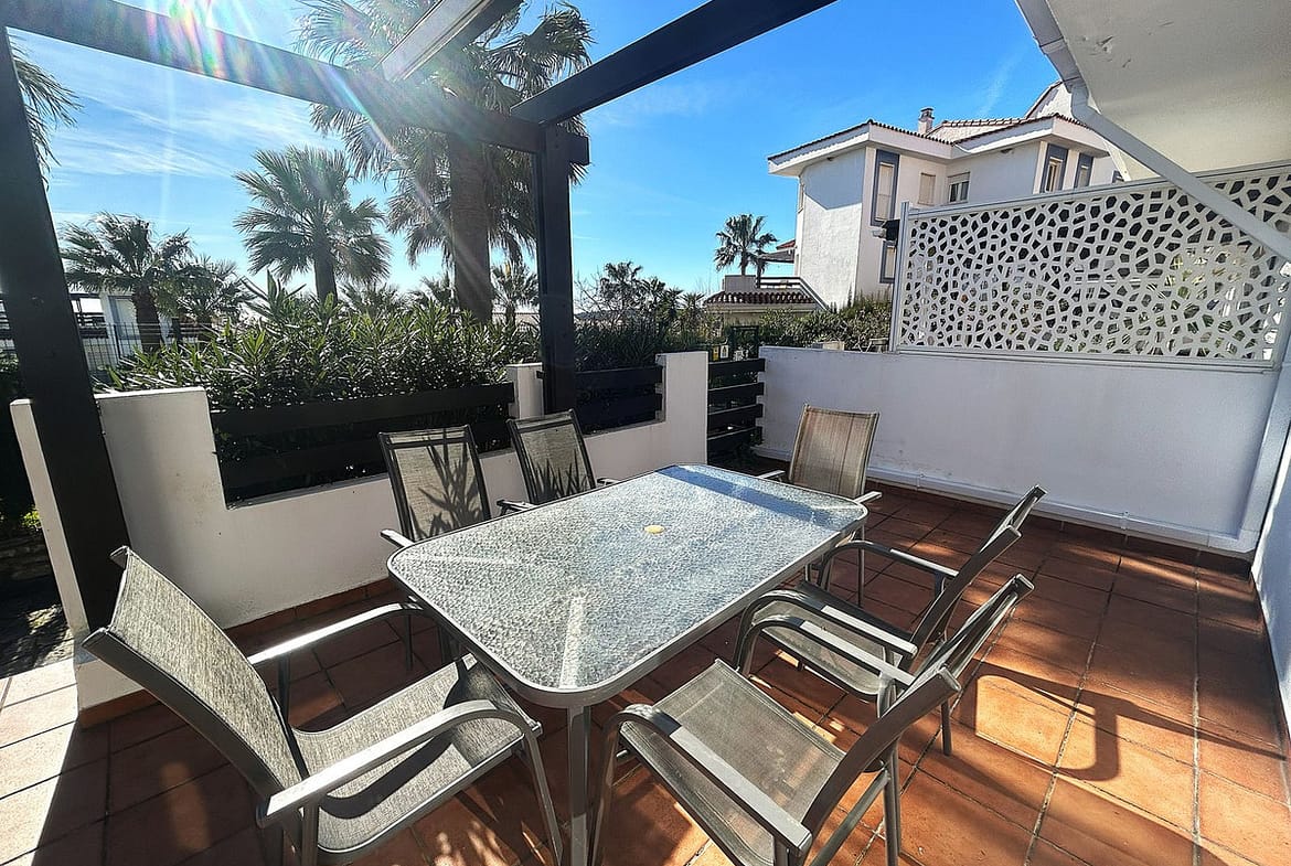 Location. Vistalmar Norte is located just a short drive from the vibrant marina of La Duquesa, beaches, restaurants, and golf courses. The property is perfectly positioned for both permanent living and holiday use, just 15 minutes from both Sotogrande and Estepona. Gibraltar Airport is approximately 30 minutes away, while Málaga International Airport can be reached in around one hour. The apartment itself is set within a secure, gated development that includes four communal swimming pools distributed throughout the complex, ensuring a quieter, more relaxed atmosphere. These pools are surrounded by lush, landscaped gardens with walking paths, tropical planting, and shaded seating areas. The apartment also includes private underground parking for added convenience. For information on the buying process, please click here. Indoor Layout. Entrance into the apartment is from the main terrace leading into a bright lounge/dining room. This spacious room is double aspect including a french window onto the terrace ensuring plenty of sunlight. The open plan kitchen looks onto the lounge/dinning room. It is fully fitted and equipped to a good standard. The main bedroom is off the lounge/dinning room. This is a spacious double with plenty of wardrobe space and a pleasant view into the terrace. There is also an ensuite shower room. The second bedroom is off the opposite side of the living room. This is also a good sized double with fitted wardrobes. Next to this is a guest shower room. The apartment is tastefully furnished to a high standard. Outdoor Layout. To the front of this charming apartment is a large, private terrace. This has beautiful views over one of the community views and to the Mediterranean Sea. This terrace is south facing and captures the sun and takes advantage of our year round climate. This is a perfect spot for al fresco living. A couple of steps down from the terrace lead to a community path and one of 4 swimming pools – so close it feels like a private pool. Also included is a secure underground parking space.