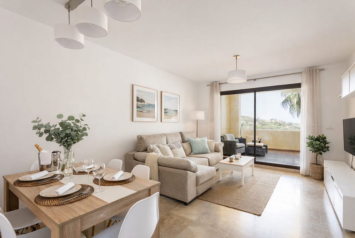 We present this bright 2-bedroom apartment in Duquesa Village, one of the most exclusive residential communities in the La Duquesa area (Manilva), with a key advantage: an active tourist licence and the property being fully equipped, ready to move in or continue renting out from day one.