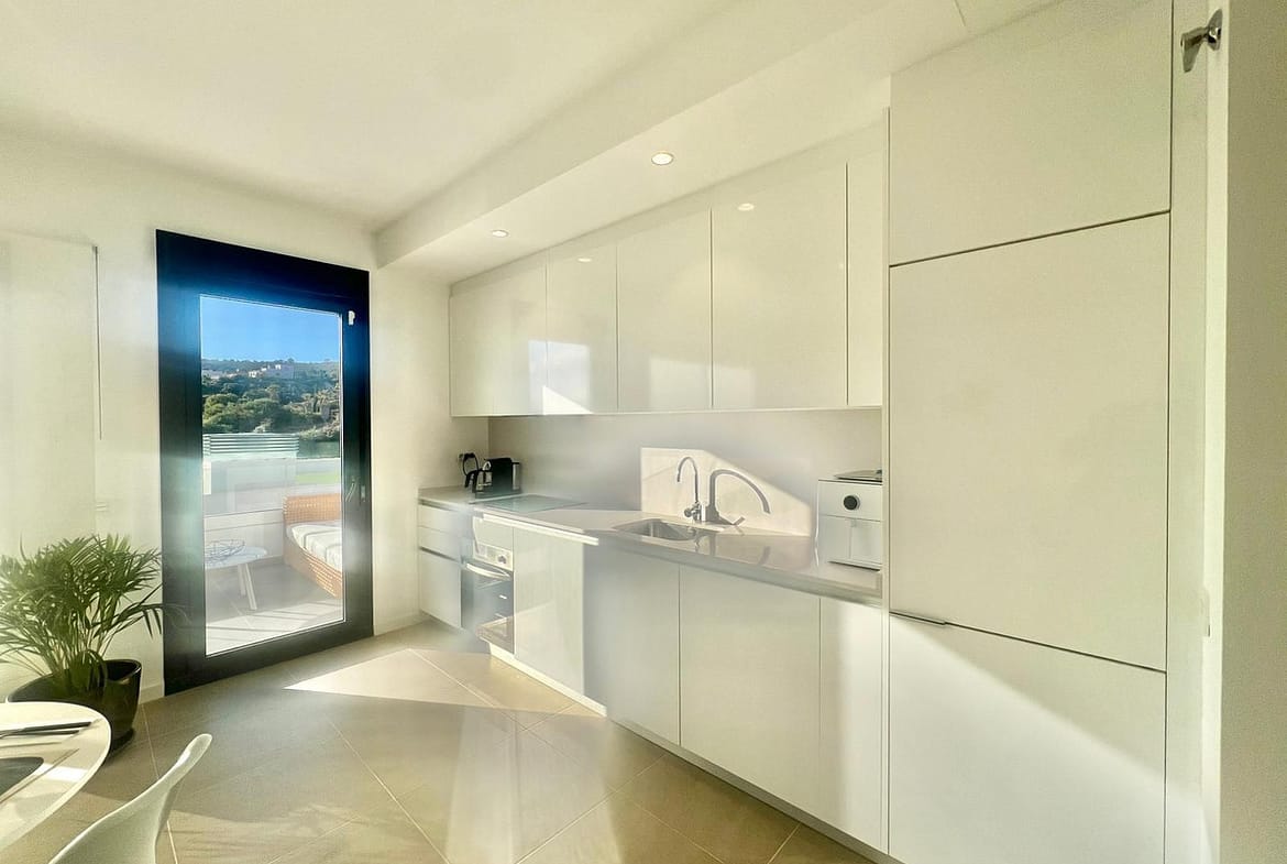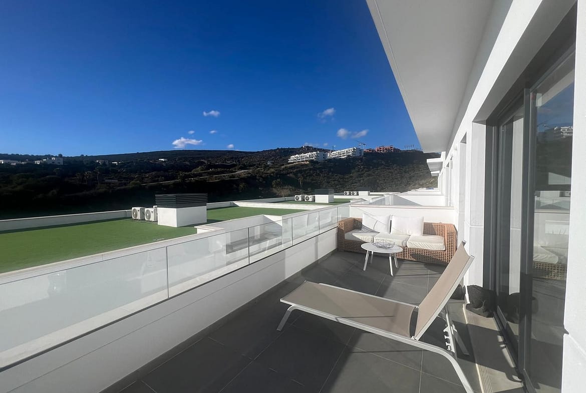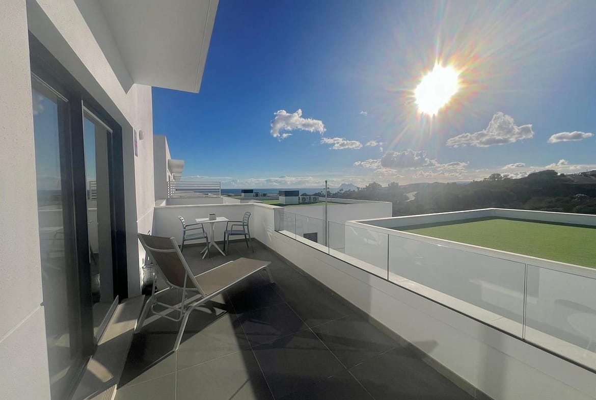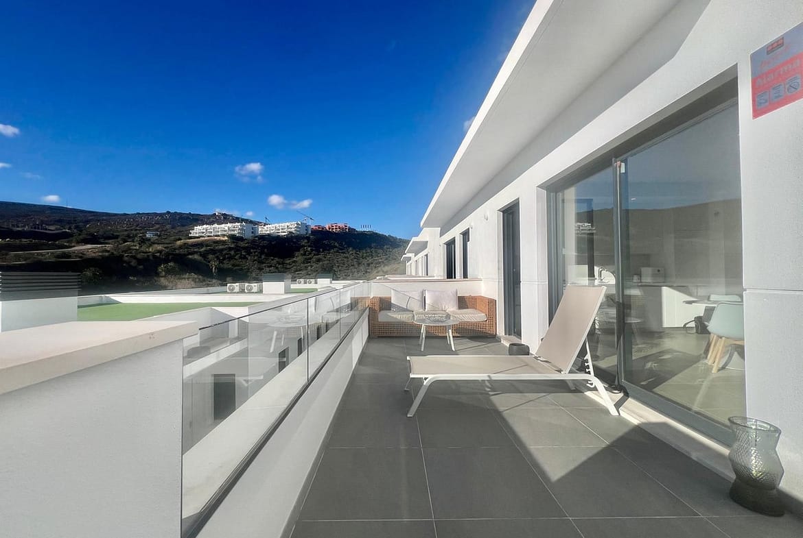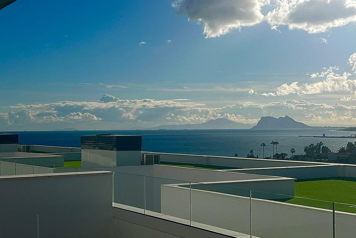 Magnificent apartment , located within the highly sought-after development of Bahía de las Rocas – Manilva. The property offers two bedrooms and two bathrooms, combining comfort, elegance, and functionality. From the moment you enter, a welcoming entrance hall leads to a spacious, light-filled living area featuring an open-plan kitchen, dining area, and a comfortable lounge. This space opens onto a large terrace, a true extension of the interior, offering spectacular views of the sea, Gibraltar, the coast of Morocco, and the surrounding hills. Thanks to its ideal south to south-west orientation, the apartment enjoys optimal sunlight throughout the day. The property can be accessed directly from the underground parking, with a private entrance leading straight into the apartment. A laundry room completes this property. The apartment is sold fully furnished. The project, completed in summer 2025, is a contemporary residential complex consisting of 46 apartments, designed to offer exceptional panoramic views of the Mediterranean, just a few meters from the beach. The complex stands out for its high-quality materials, generous living spaces, and exclusive amenities, including an infinity pool, gym, and spa. Ideally located close to golf courses and marinas, it is just 15 minutes from Gibraltar Airport and a short distance from Estepona, La Duquesa Marina, and the prestigious Sotogrande Marina. Puerto Banús and Marbella are less than 30 minutes away. An exceptional property, ideal as a primary or secondary residence or as a high-quality investment, set in a natural and exclusive environment, perfect for enjoying the Costa del Sol climate and the Mediterranean Sea. A must-see!