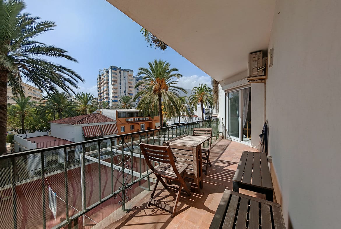 Apartment for sale in Marbella Centro, Marbella with 2 bedrooms and 1 bathroom. Regarding property dimensions, it has 71 m² built and 17 m² terrace. Has the following facilities amenities near, transport near, air conditioning, fully fitted kitchen, security entrance, dining room, private terrace, kitchen equipped, living room, internet – wi-fi, covered terrace, fitted wardrobes, gated community, lift, beach side, street view, close to sea / beach, glass doors, open plan kitchen, balcony, optional furniture, wheelchair-accessible, good condition, close to shops, close to town, close to port and close to schools.