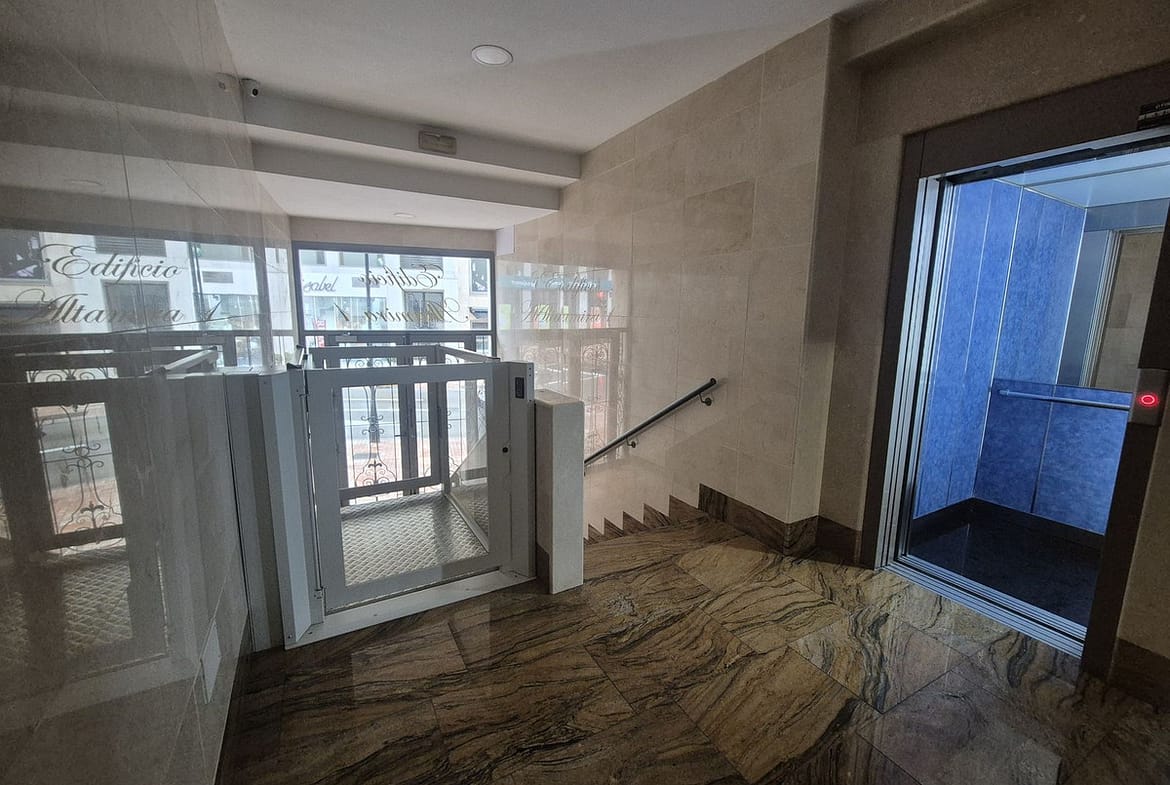 Luxury features include: hardwood floors, split air conditioning, built-in wardrobes, two terraces (one north-facing and one east-facing), elevators, wheelchair access ramps, a modern open-plan kitchen/living room, and high-end appliances.