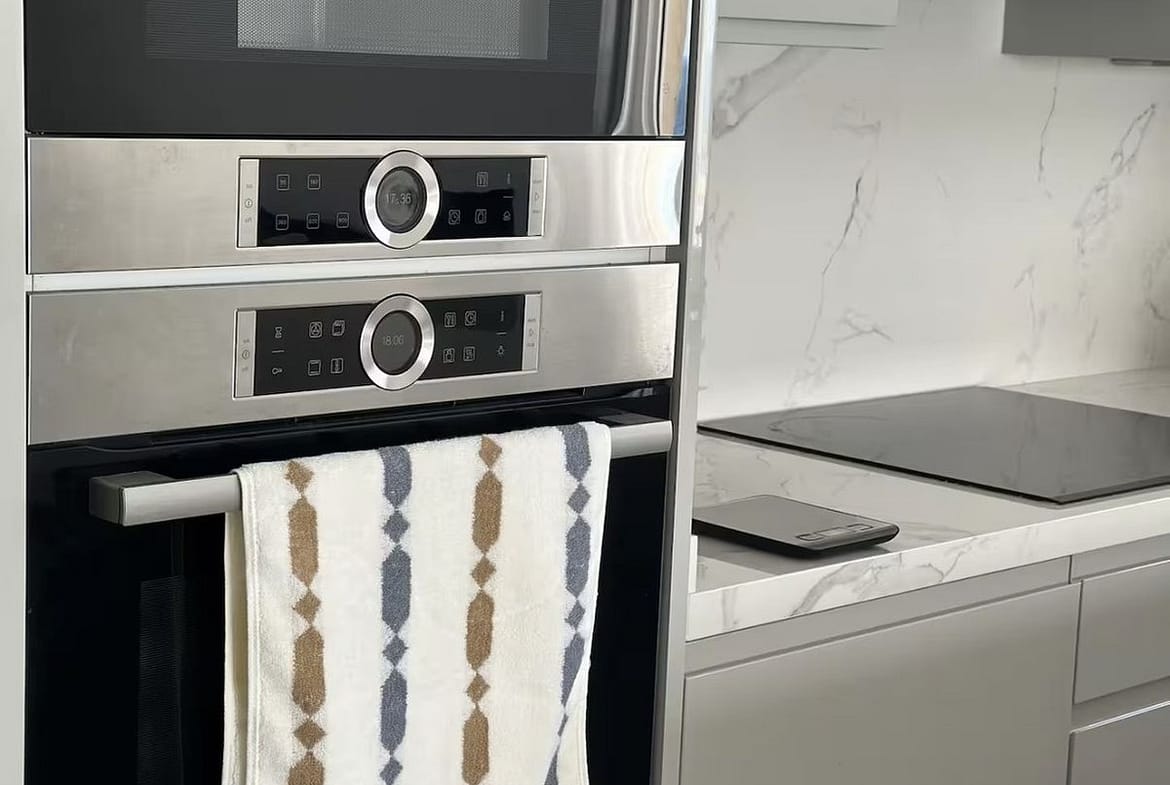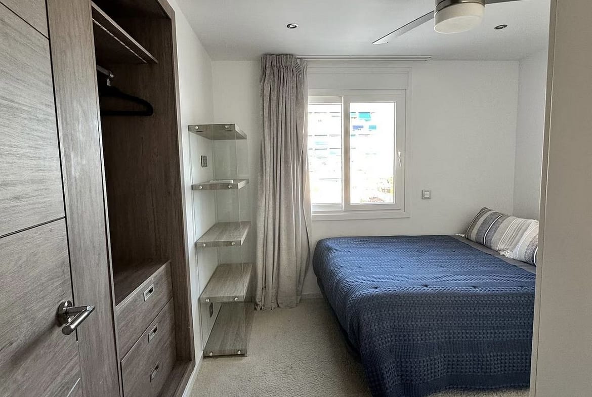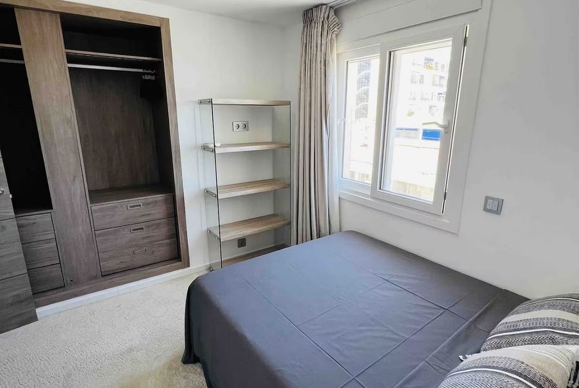 The apartment offers approximately 94 m² built, plus an 11 m² private terrace, and comprises two bedrooms, two bathrooms, an open-plan living and dining area, and a modern fully equipped kitchen. Large windows and direct access to the terrace create a seamless indoor-outdoor living experience with the Mediterranean as a constant backdrop.