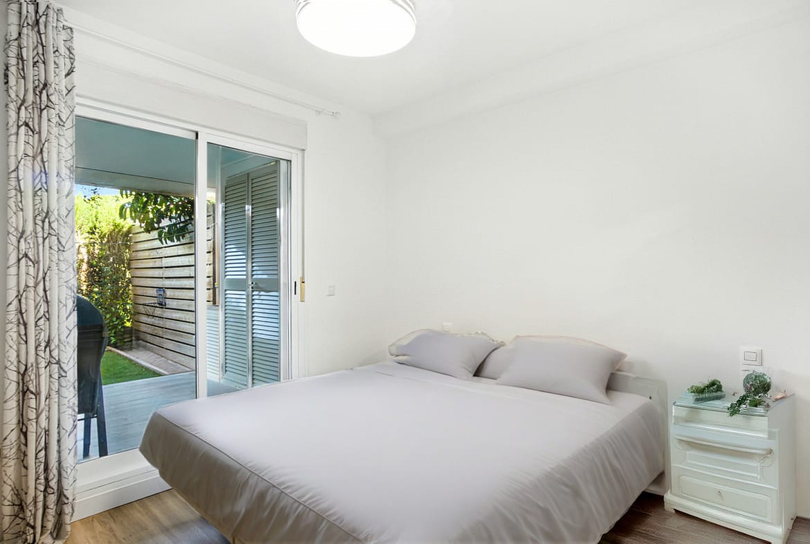 Fantastic opportunity to acquire a spacious ground floor apartment with a private garden and terrace, located in the prestigious and well-connected area of East Marbella. The property is situated close to the sea, supermarkets, restaurants, and all essential services, offering both comfort and an excellent location in one of Marbella’s most sought-after coastal areas. Set within a gated community, the complex features a swimming pool, large communal gardens, a paddle tennis court, and a children’s playground, perfect for enjoying a relaxed and family-friendly lifestyle. With a west-facing orientation, the apartment benefits from afternoon sun and a peaceful atmosphere, ideal for relaxing or entertaining. It offers a spacious living room with direct access to the terrace and garden, a fully equipped kitchen, two well-proportioned bedrooms, and two bathrooms, one of them en suite. Additional features include air conditioning, a private underground parking space, a storage room, and fitted wardrobes, making this a perfect property for permanent living, a holiday home, or a rental investment.
