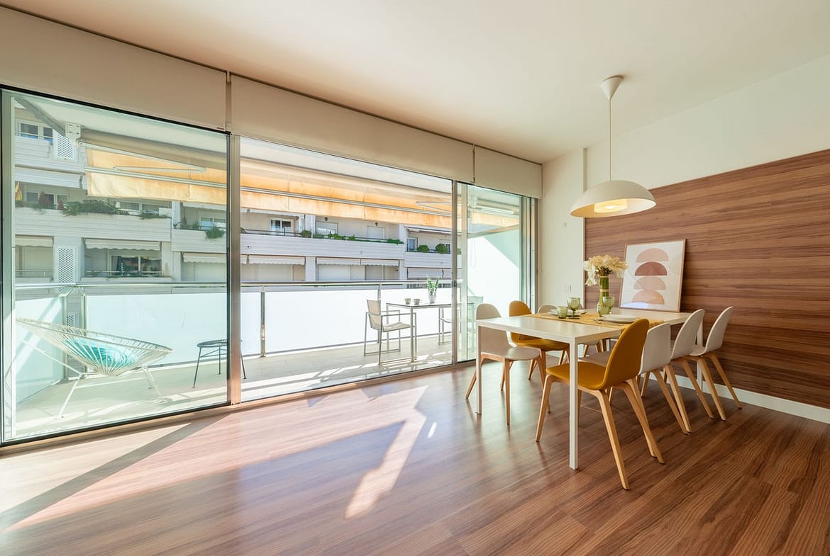 The bright and spacious living-dining room incorporates a modern, fully fitted and equipped open-plan kitchen, creating a warm and practical environment for daily living. From this area, there is access to a pleasant 11 m² covered terrace with urban views, ideal for enjoying the Mediterranean climate all year round.