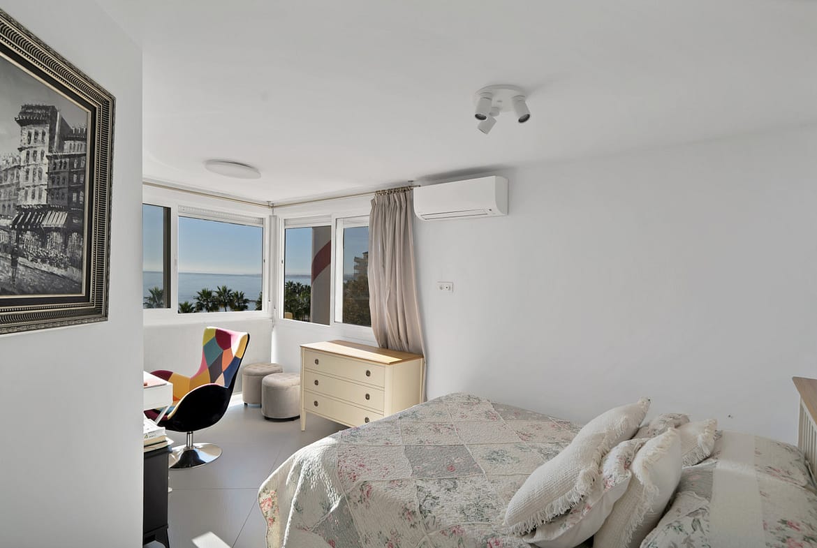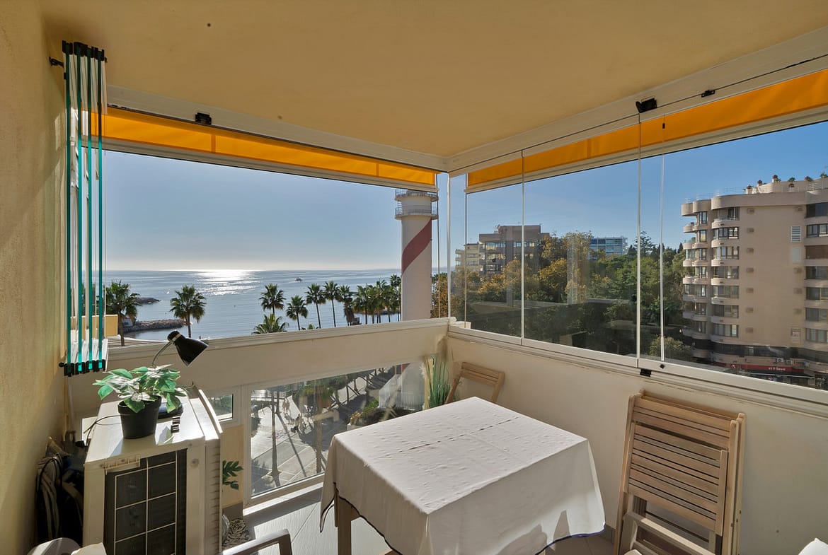 Renovated apartment with stunning sea views on the beachfrontThis beautiful fully renovated apartment is located on the frontline of the beach, in the Marbella Marina area, an unbeatable location with all essential services, restaurants, and the beach just a few steps away.From there, the property offers panoramic sea views from both bedrooms and the terrace. It features two bedrooms and two bathrooms (one en suite), a fully equipped open-plan kitchen connected to the bright living room, creating a modern and cozy atmosphere ideal for enjoying the coastal lifestyle.Includes a private underground parking space and storage room.The urbanization has three entrances: one on Avenida Duque de Ahumada, another on Avenida Antonio Belón, and the third on Calle Sevillano. Additionally, it offers a rooftop swimming pool and 24-hour concierge service.A perfect home for those seeking comfort, elegance, and a prime location by the sea.You have at your disposal the abbreviated information document. Costs: Taxes (ITP or VAT + AJD) + Notary and registry fees.NGS.