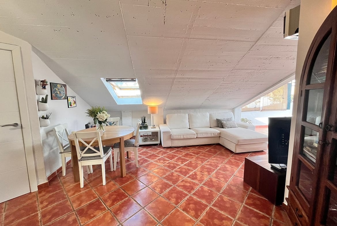 This duplex penthouse consists of two very bright attic bedrooms, a furnished and equipped open-plan kitchen, a full bathroom, a living-dining room with access to the terrace, a covered terrace with a pergola, views of the Old Town and the famous Sierra Blanca (Juanar and La Concha). In addition, as it is a duplex in the upper part of the building, it has a private solarium where you can set up a chill-out area and enjoy 360º panoramic views of the sea, city and mountains. All amenities are within walking distance to make your life easier and more comfortable, such as a pharmacy, supermarkets, restaurants, Ochoa Hospital, etc., so you won't need a vehicle to get around (a real luxury). The building has a lift and a unique location. A unique opportunity. Come and visit!
