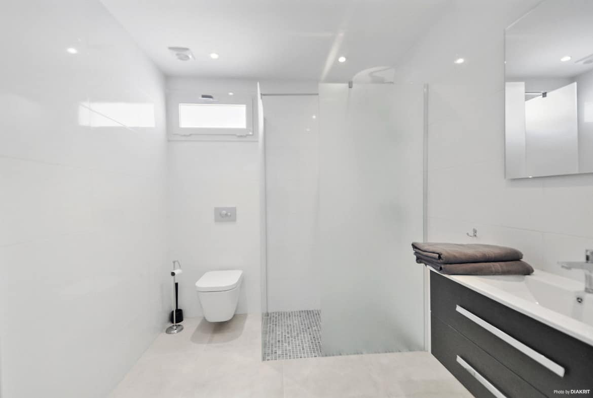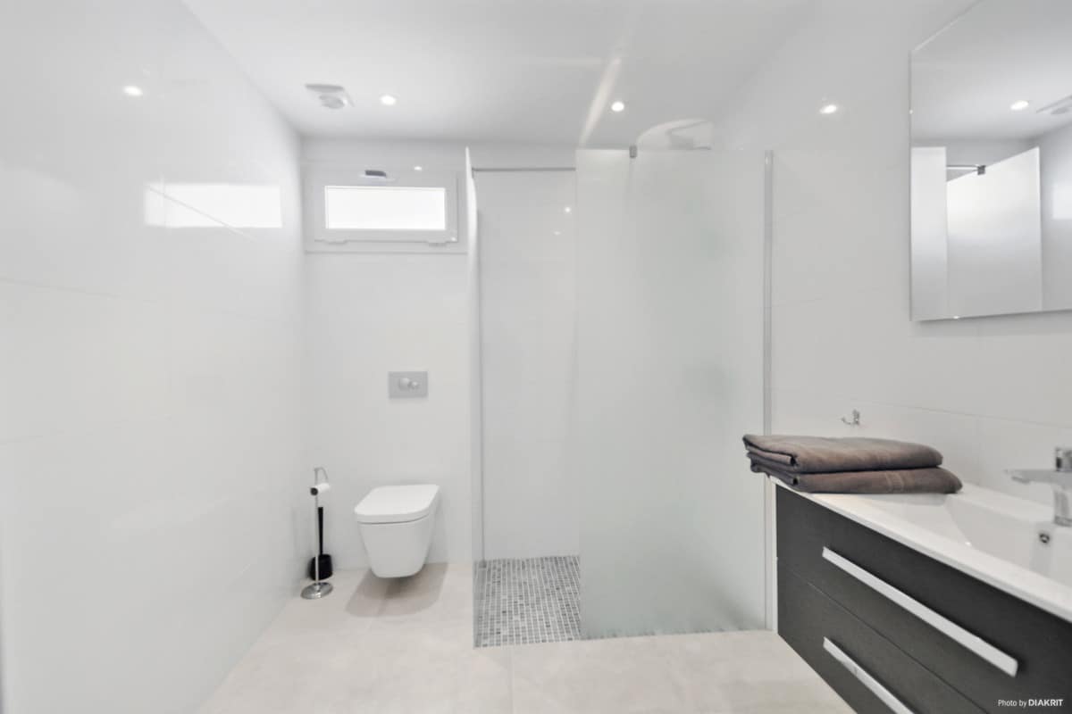 Both bathrooms were completely renovated in 2017 and feature high-quality finishes with tiled walls, modern showers, washbasins, and WC.