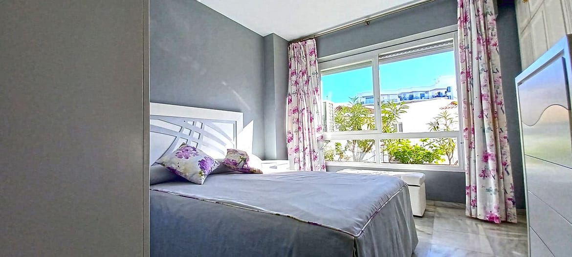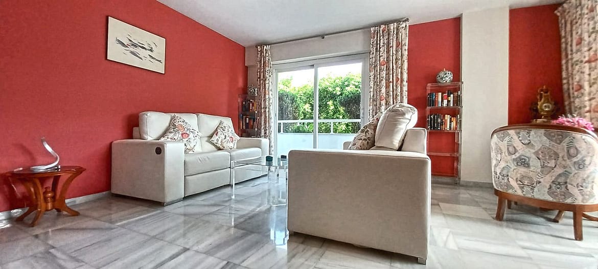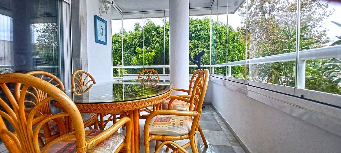 Discover this spacious and bright flat in an iconic building with an exceptional location just 30 metres from the seafront promenade and surrounded by all kinds of shops, cafés, restaurants and services such as private clinics, health centres, public transport, etc. The apartment is part of a fully enclosed community and, in addition to a concierge service, has well-maintained communal areas and a swimming pool surrounded by beautiful communal gardens with a solarium. A property that undoubtedly offers everything you need to enjoy life in Marbella by the sea. It has a total built area of 113 m2 plus communal areas and a garage space not included in the price (45.000€). It is distributed in an entrance hall, a fully furnished kitchen equipped with Siemens appliances with access to a terrace, a spacious living-dining room with 2 exits to terraces, one of which is enclosed and glazed with Lumon and fitted out as a summer dining room, a master bedroom with fitted wardrobes and en-suite bathroom, and a second bedroom with fitted wardrobe and bathroom. There is also the possibility of easily converting a space into a third bedroom, adapting it to your needs. Good quality construction. Hot and cold air conditioning, intercom, double-glazed windows. Marble floors. Optional furniture. This property is not only ideal for living by the sea and its promenade in one of the most privileged areas of Marbella, but also an excellent investment opportunity in a property that is constantly increasing in value and offering high rental yields.