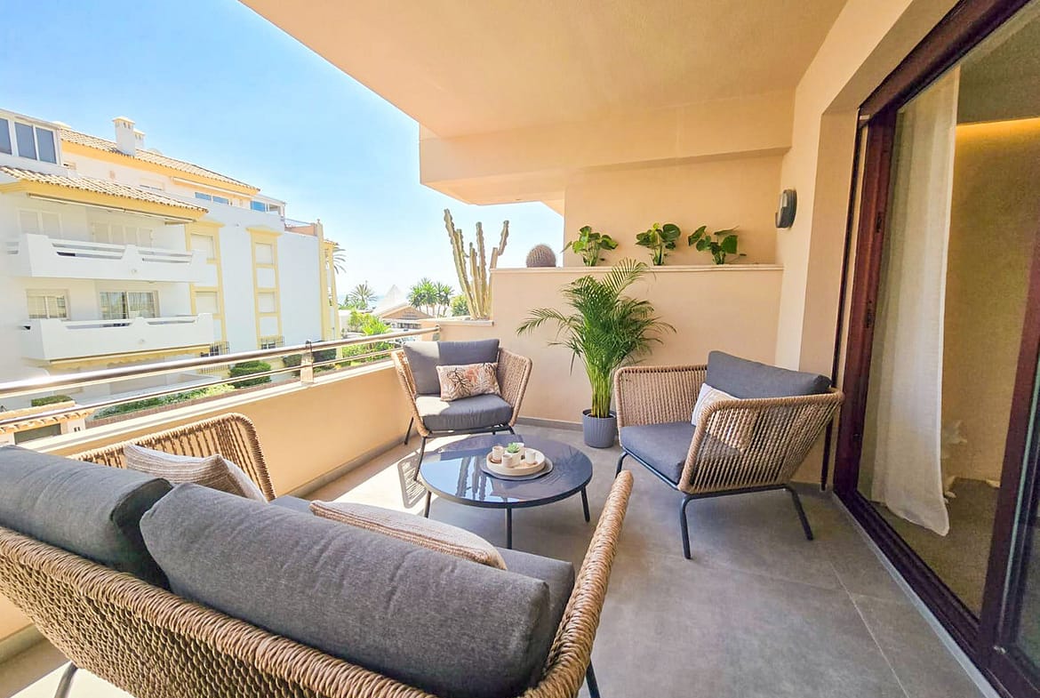 This luxurious 2 bedroom 2 bathroom apartment located in the prestigious beachfront urbanization in San Pedro has been completely transformed with top-quality renovations, offering a modern and sophisticated living experience. Every aspect of the home has been upgraded, including a brand-new water system and electrical wiring throughout.