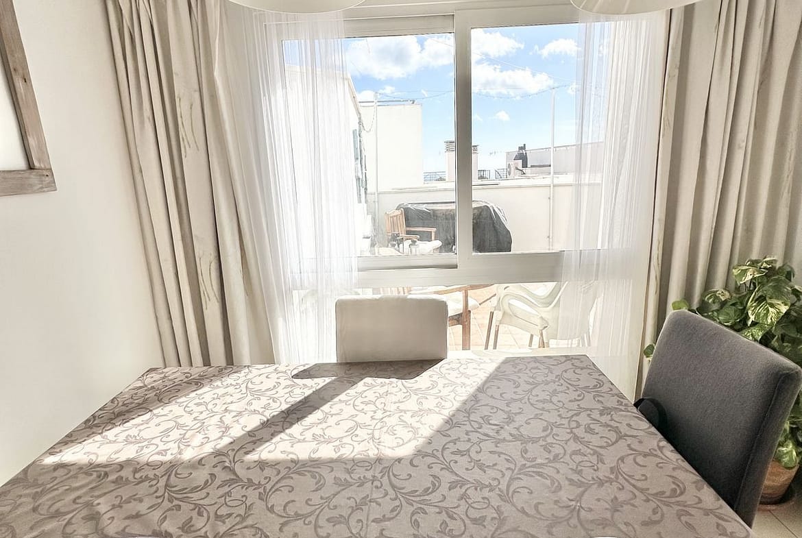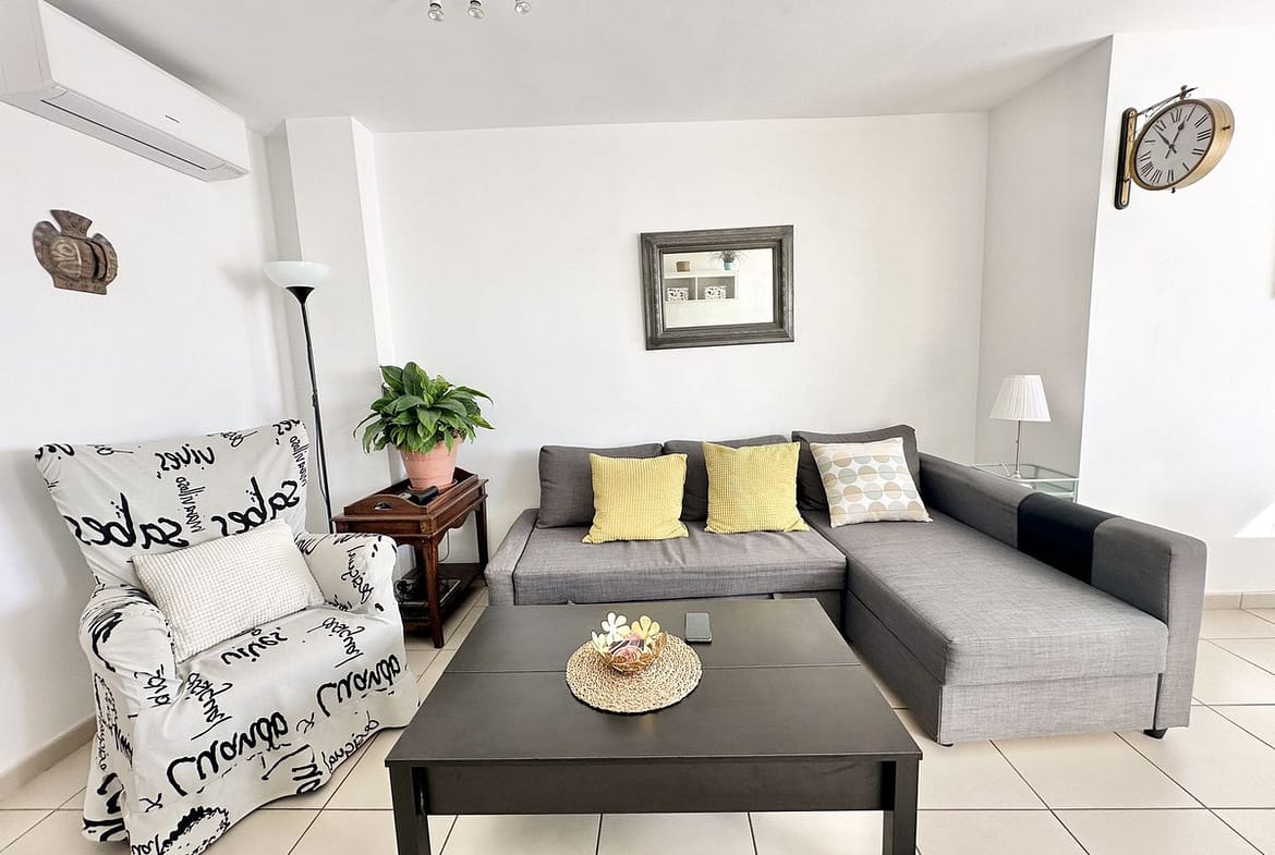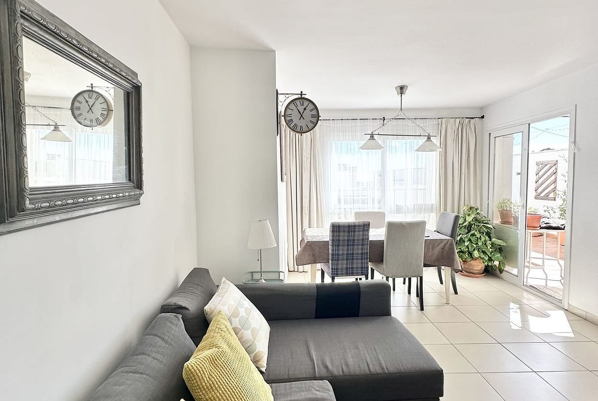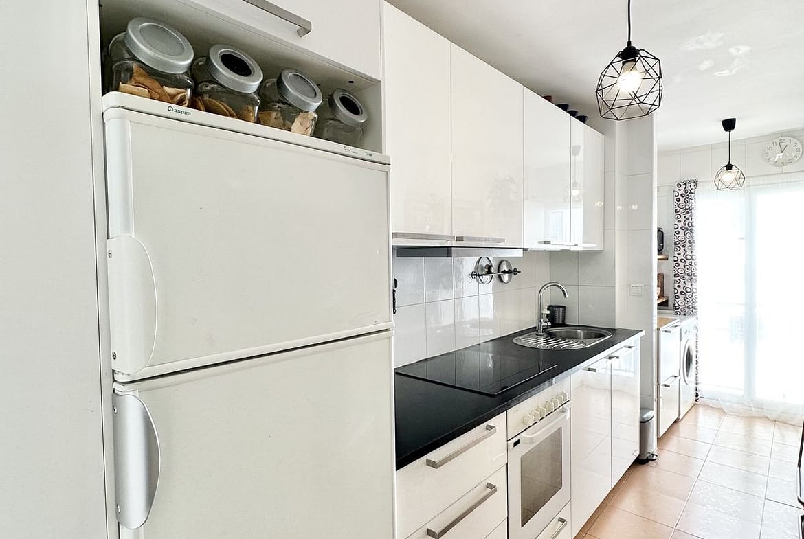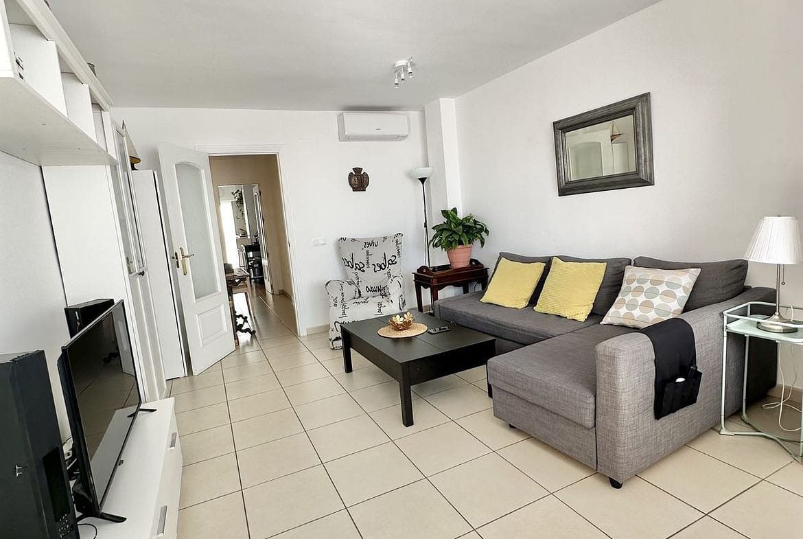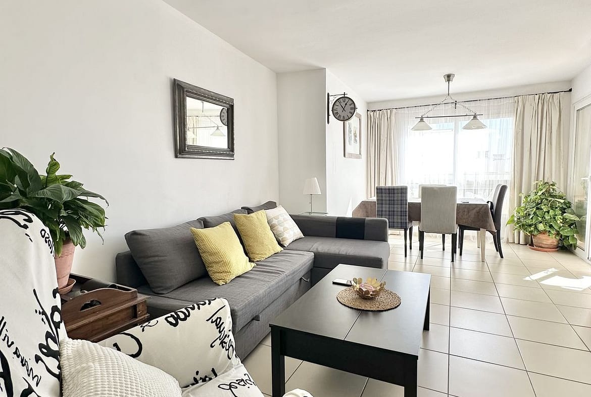 This two-bedroom apartment faces south and offers beautiful views. The spacious sunny terrace is the perfect spot for breakfasts, relaxing, and warm evenings year-round. Very bright, cozy, and completely ready for occupancy—an excellent option for a permanent home, an investment, or a holiday in Spain.