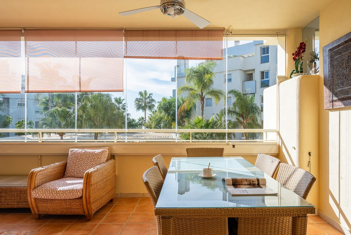 Step inside and feel the calm of bright living space and a big glazed terrace with sea views, perfect for morning coffee or sunset evenings. Two bedrooms and bathrooms, a sunny living room, a well-equipped kitchen, and a utility balcony. South-facing orientation floods every room with natural light throughout the day.