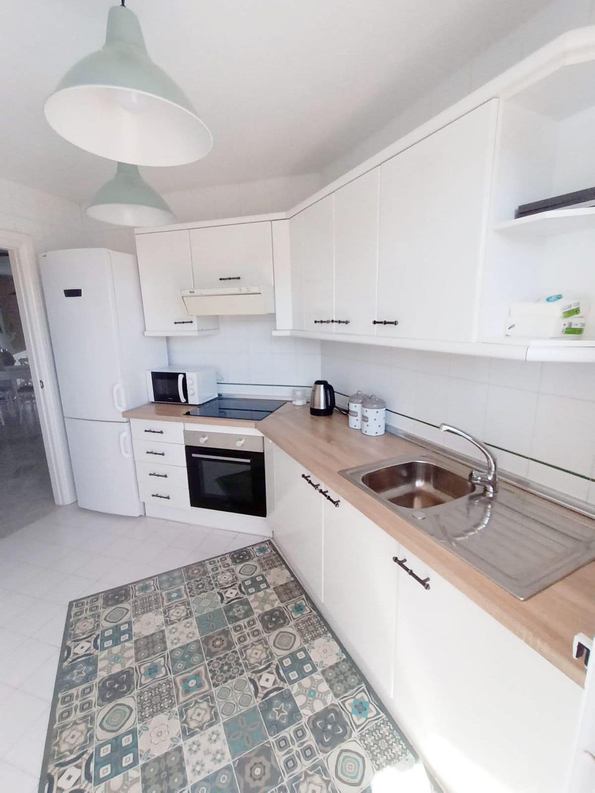 The separate kitchen is fully equipped.