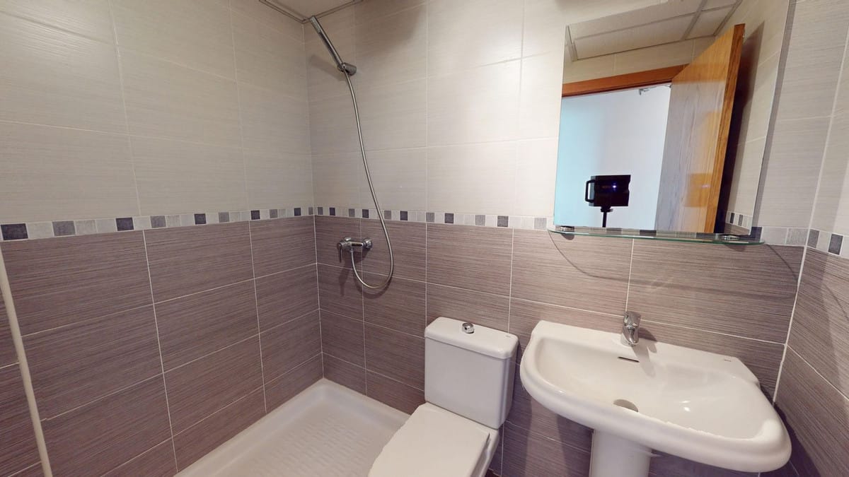 Flooring: wood-effect laminate and porcelain tiles.