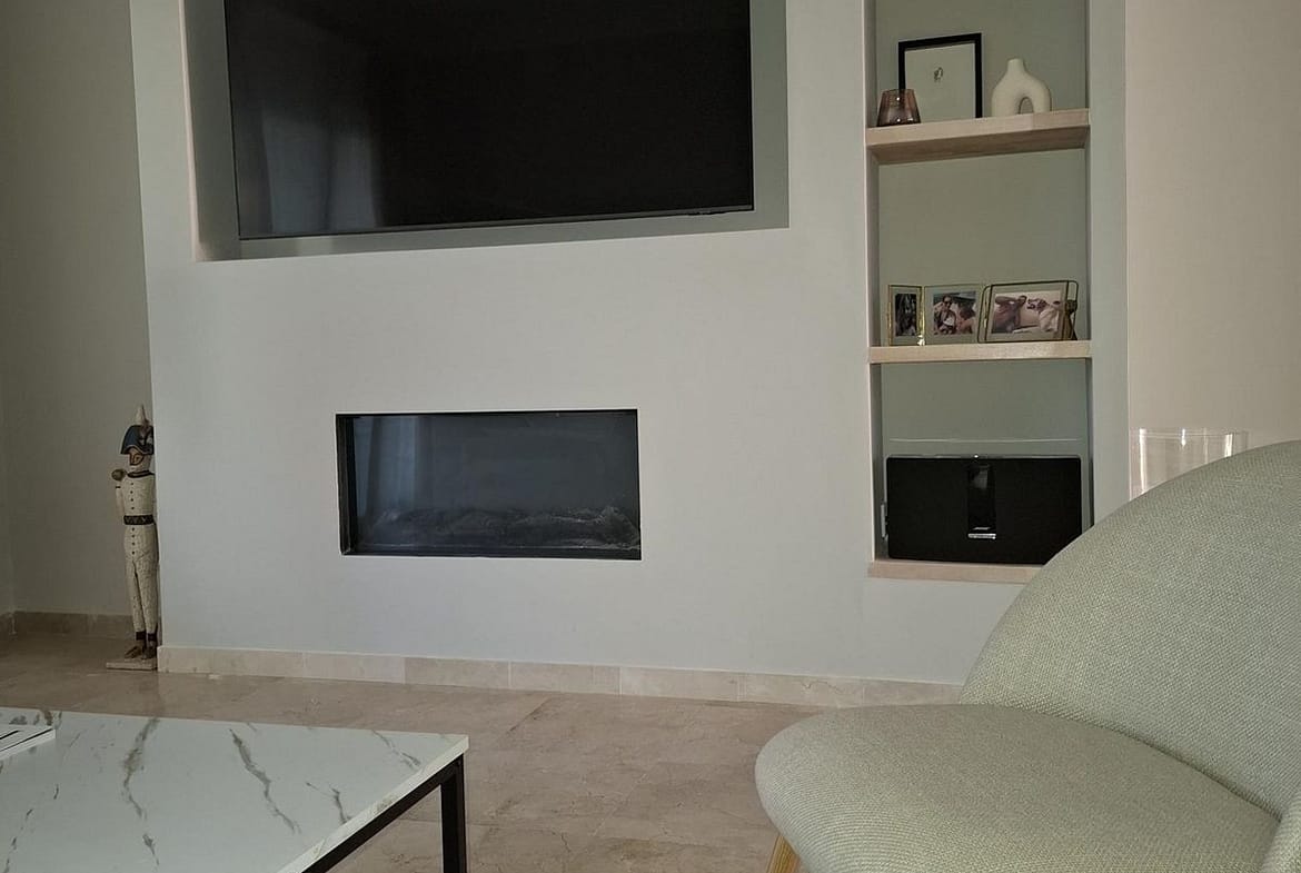 The fully equipped kitchen, with luxurious details and an elegant glass partition separating the spaces, is a dream for any food lover. The large living-dining room, with a cozy electric fireplace, is the perfect place to relax or entertain friends and family. Furthermore, the parking space and storage room add extra value to this property.