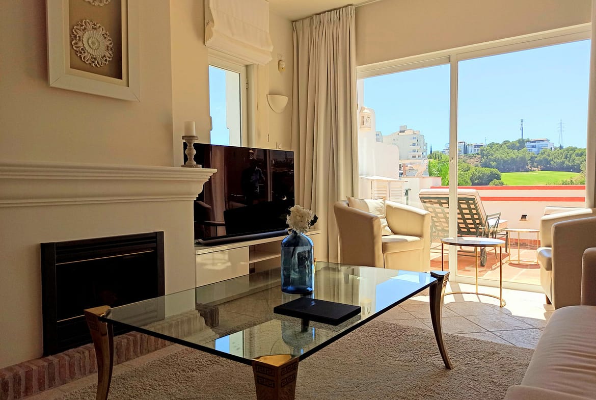 Set within a secure gated community with manicured gardens and a heated communal pool, the apartment is perfectly placed for both relaxation and convenience — only 5 minutes from public transport, restaurants, beach clubs, supermarkets and pharmacies. Golf enthusiasts are spoilt for choice with top courses nearby including Miraflores, Santa Clara and Golf Río Real.