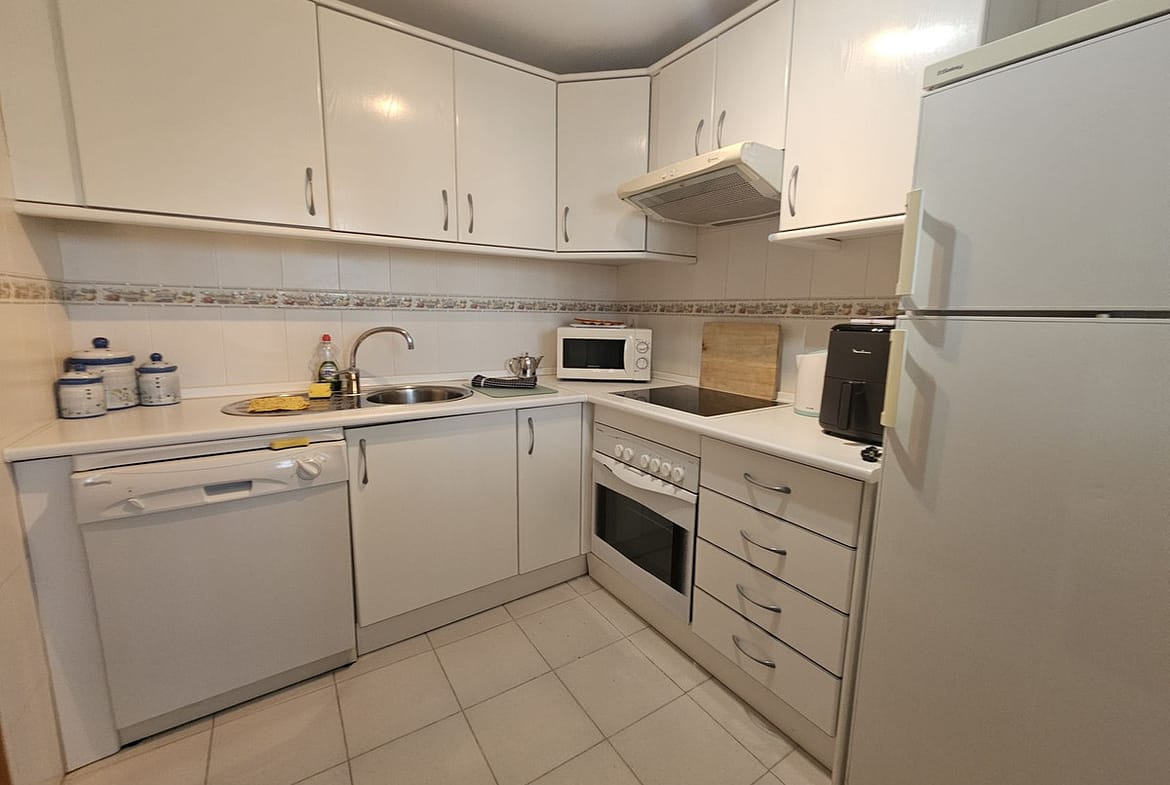 Apartment in Miraflores with fantastic sea views. It features two spacious bedrooms and two bathrooms, a fully equipped kitchen with a utility room, and a spacious living-dining room with access to a 10 m2 terrace with fantastic sea views. The complex is one of the best in the entire Miraflores residential area, very well maintained, with large garden areas and two swimming pools. It is also located just minutes from Bombo Beach, in the Torrenueva area.