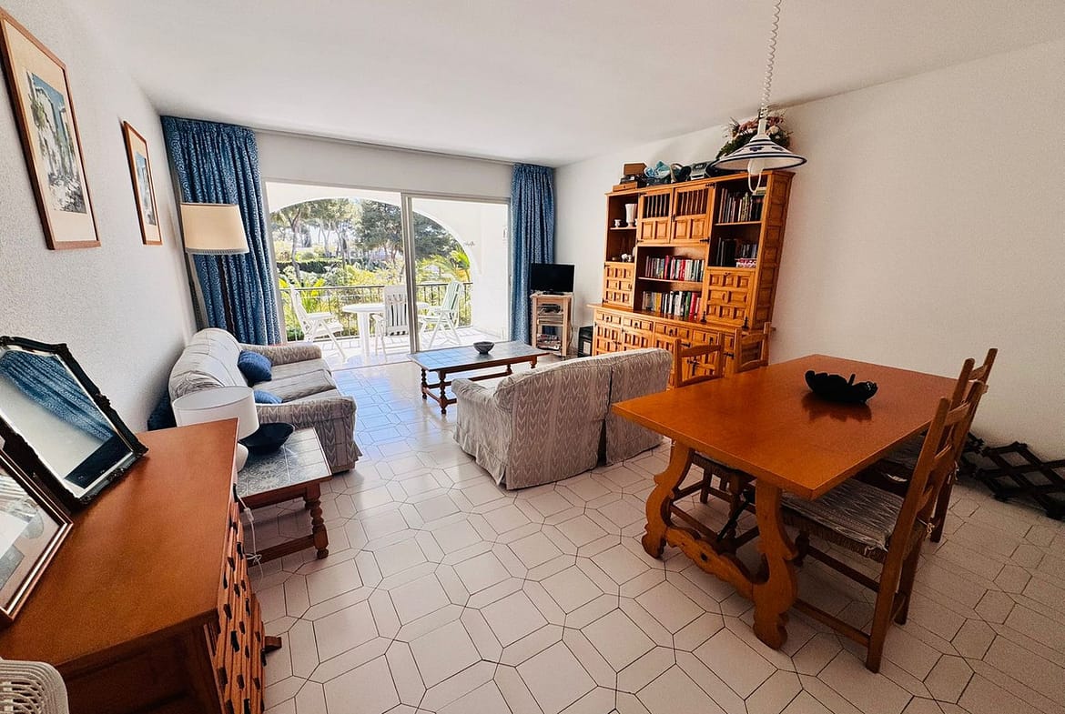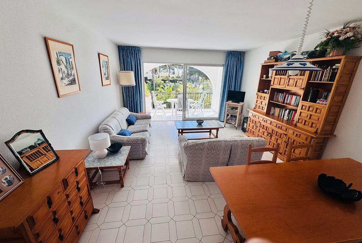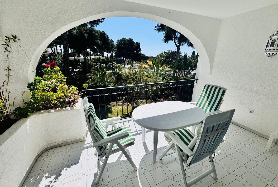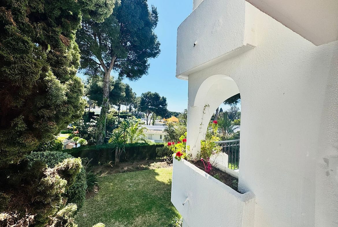 Set within the tranquil surroundings of the beautifully maintained Miraflores gardens, the flat provides a peaceful retreat away from the hustle and bustle, with lush greenery creating a serene and private atmosphere.