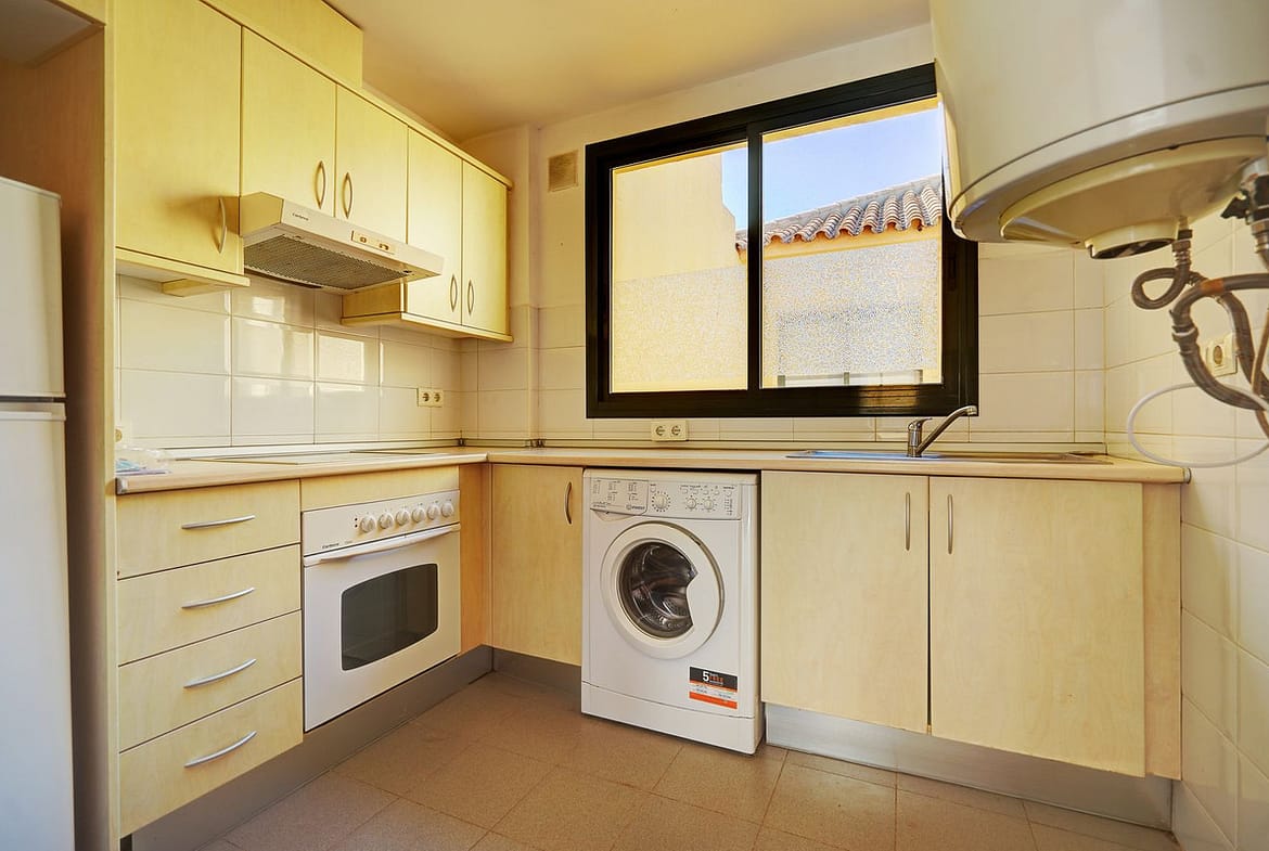 The interior offers a bright living room, separate kitchen, two double bedrooms, and two bathrooms, including an ensuite in the master. Both bedroom and the lounge enjoy access to the outdoor space. While the apartment is ready for modernisation, its price reflects this, making it an excellent opportunity for buyers to customise and add value in a prime Costa del Sol location.