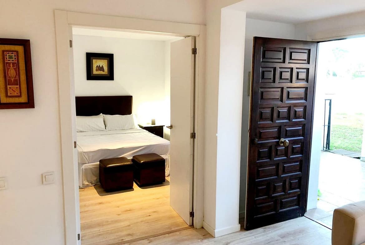 Cozy and bright renovated corner apartment with 2 bedrooms in Benamara, Estepona, just 200 meters from the beach. The property offers an open-plan kitchen, two bedrooms, a bathroom and a comfortable terrace. The gated community features a beautiful swimming pool and extensive garden areas, perfect for relaxing. The location is excellent, with shops and restaurants nearby, as well as easy access to Estepona, Puerto Banús and public transport. An ideal home by the sea or a great investment opportunity!