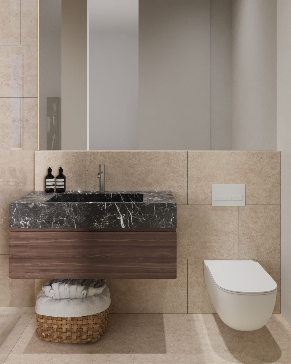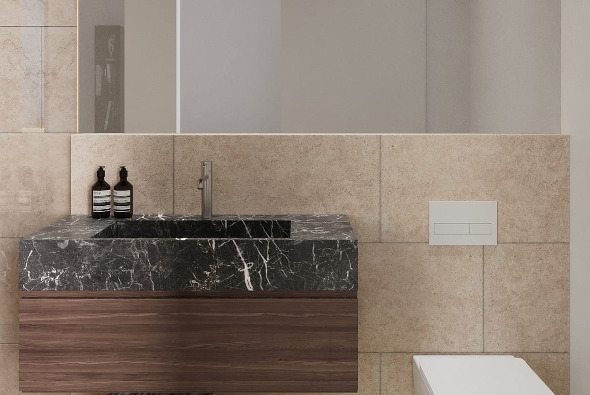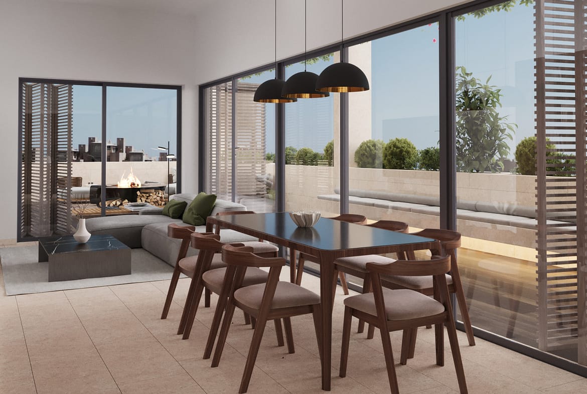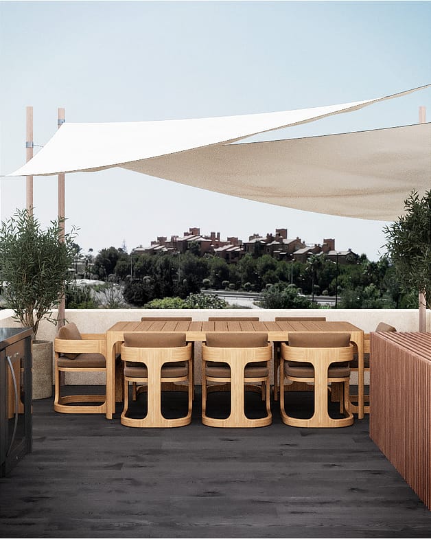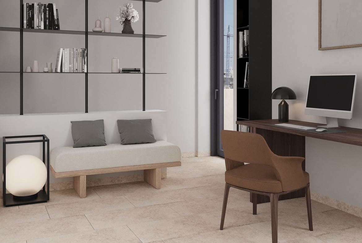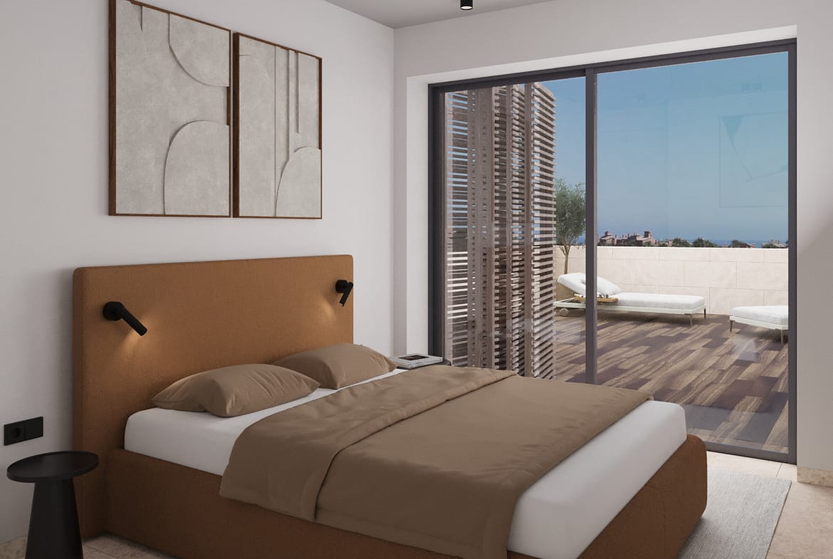 All apartments are equipped with underfloor heating, Schneider light switches, intelligent locks and air conditioning, as well as water-saving bathroom and kitchen fittings. Fully fitted and equipped kitchens. German Villeroy & Boch bathroom taps. Sliding doors unite the terraces and living areas as one, harmonising indoor-outdoor living. Some units are designed with movable walls to adapt to evolving families. Wooden Mallorcan blinds provide shade and allow air to circulate.