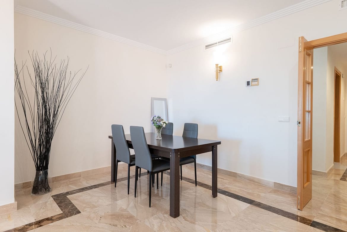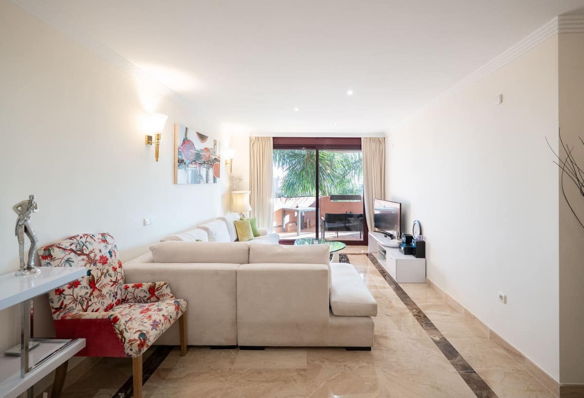 Located on the New Golden Mile between Estepona and San Pedro de Alcántara, this apartment is situated on the second line from the beach, within the well-known gated community of Las Nayades. The area offers a peaceful residential atmosphere while remaining within walking distance of the promenade, the sea, cafés, mini-markets, and the popular Tikitano restaurant. Estepona is just a 10-minute drive away, while Puerto Banús and Marbella can be reached in approximately 15 minutes.