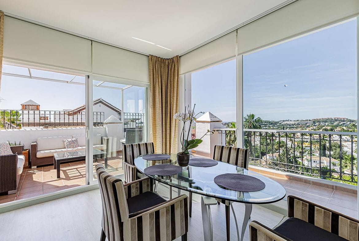 A fantastic penthouse duplex apartment with stunning views over the ocean, mountains and beautiful surroundings of Nueva Andalucia.