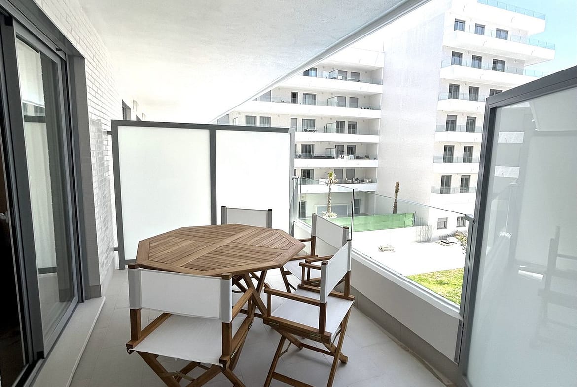 This 2 bedroom and 2 bathroom modern apartment is a cosy and clean apartment nice to live all year long, giving an air of easy life with its modern interior. Has one private terrace overlooking a courtyard, and another facing the street, with nice furniture outside to chill.