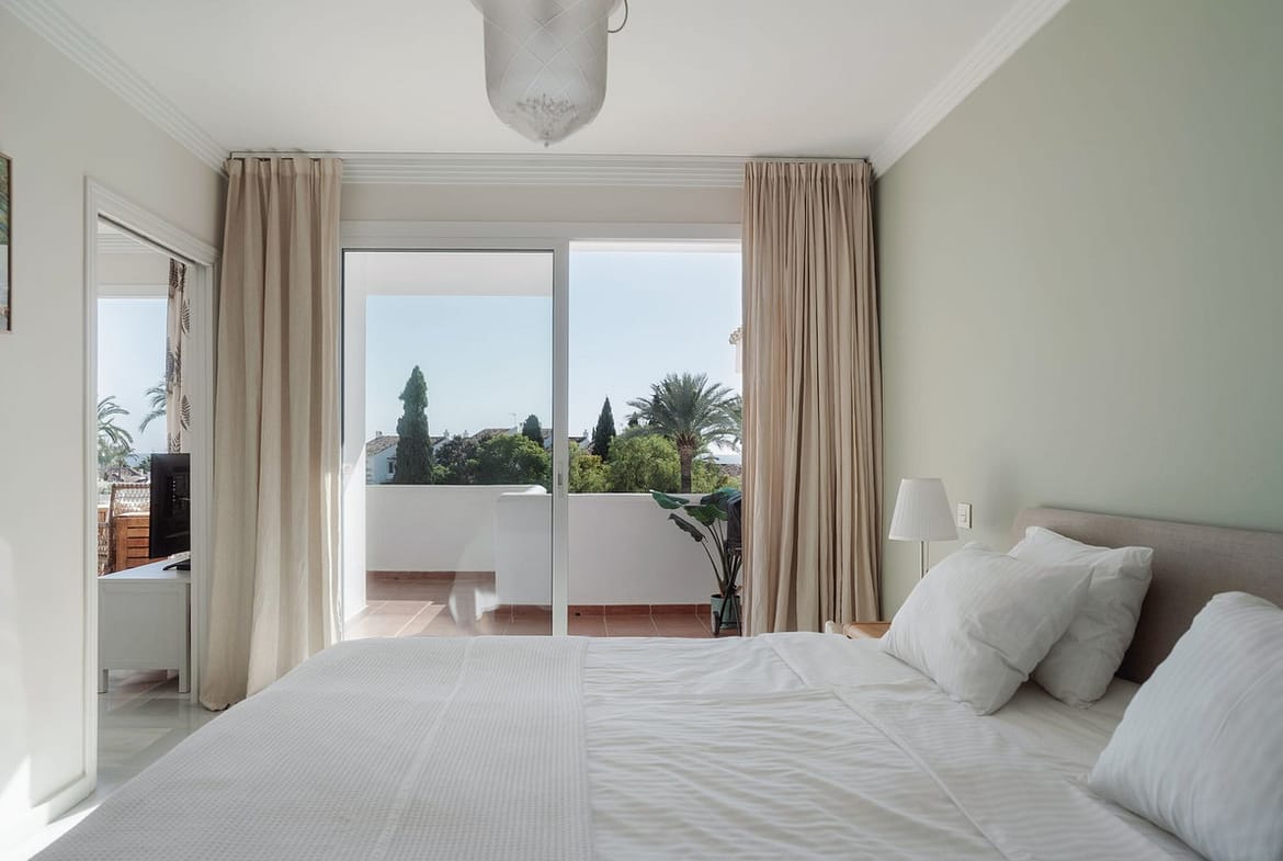 Sea view apartment on prime location. Located in the heart of Nueva Andalucía, this spacious 2-bedroom, 2-bathroom apartment offers the perfect blend of comfort, location and lifestyle. The apartment features a well-designed layout with generous living spaces filled with natural light throughout the day. The south-facing terrace enjoys open ocean views, making it the ideal spot for morning coffee or sunset evenings.