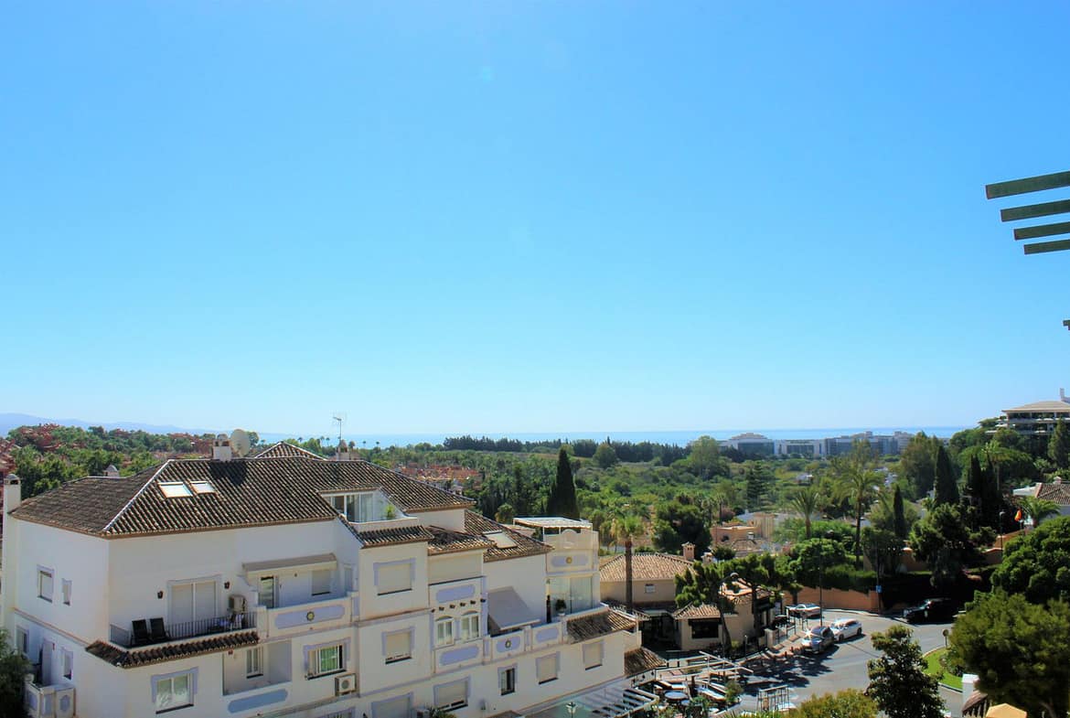The jewel of this flat is its private terrace, which offers stunning open views of Nueva Andalucía, El Puerto and the sea, ideal for enjoying the balmy Mediterranean nights. The kitchen is fully equipped and has a laundry area. In addition, the building has a reception, several swimming pools and large garden areas that enhance the charm of the place.