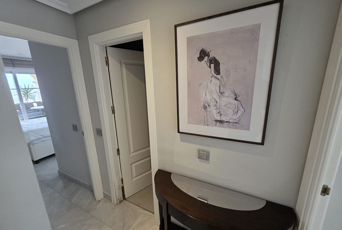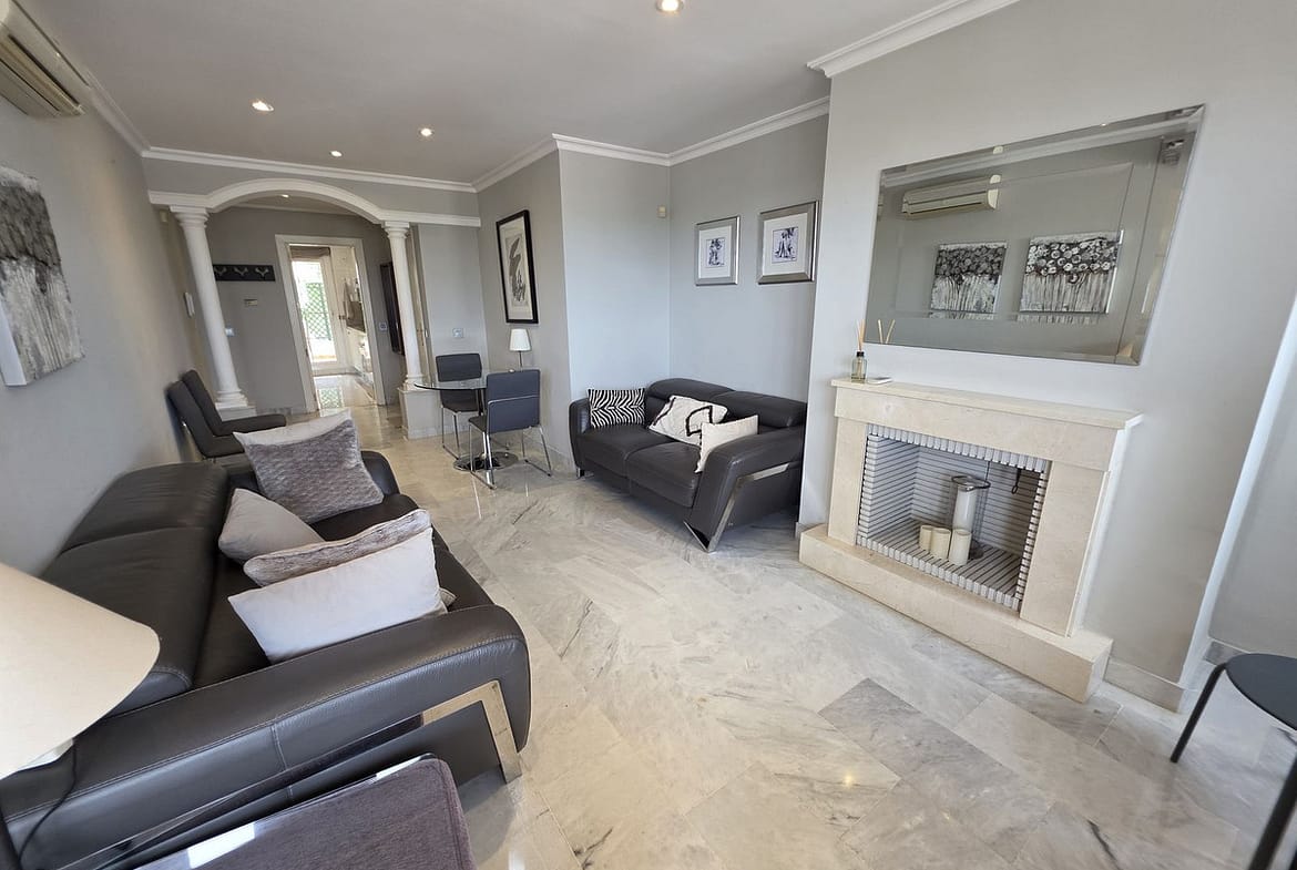 This beautifully designed 2-bedroom, 2-bathroom apartment in Nueva Andalucía, Marbella, is available for rent, offering the perfect combination of comfort, luxury, and convenience. With 92 m² of built space and a 20 m² terrace, it boasts breathtaking panoramic views of the mountains and lush surroundings. The open-plan living and dining area is spacious and bright, seamlessly extending to the terrace for a perfect indoor-outdoor living experience. The fully equipped modern kitchen includes high-quality appliances and ample storage, complemented by a separate utility area. The master bedroom features an en-suite bathroom, while the second bedroom is spacious with access to the second bathroom.