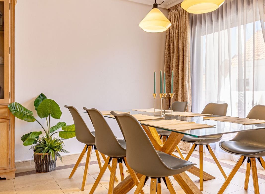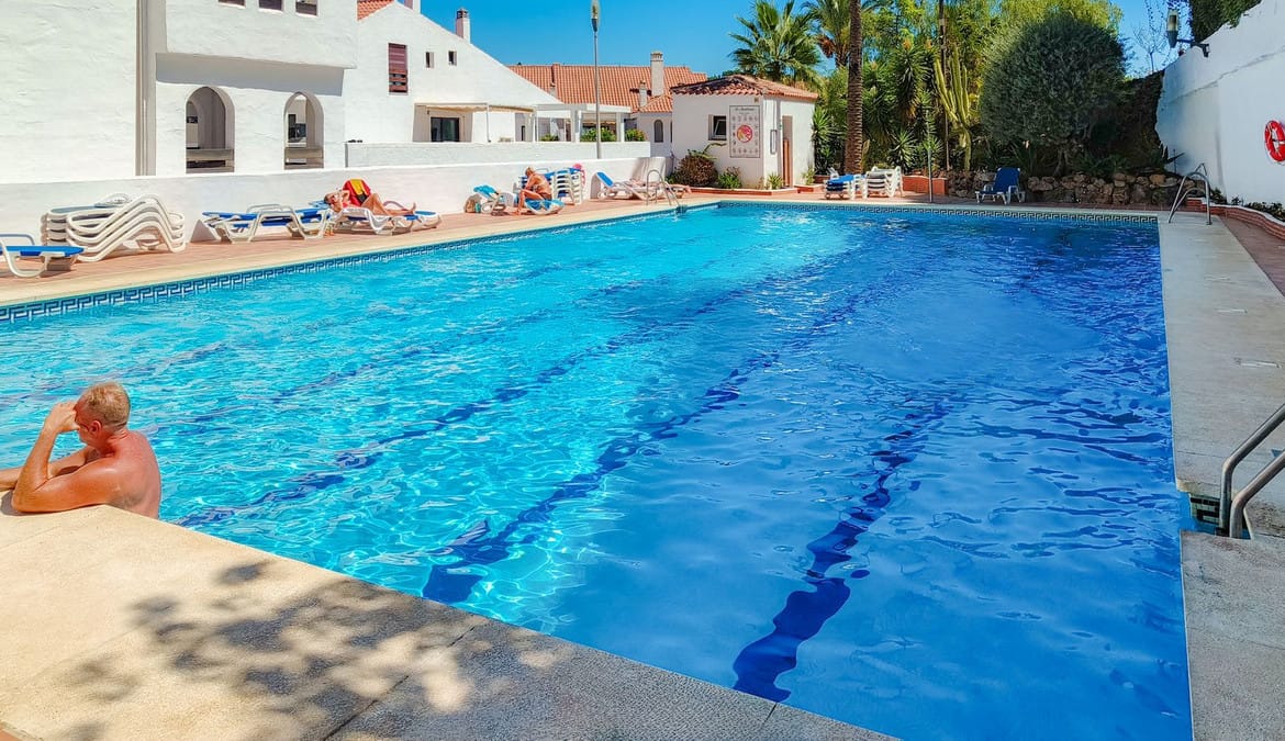 The apartment is part of a well-maintained urbanization featuring two communal swimming pools – one large and one smaller – ideal for cooling off on warm summer days. A garage space is also included in the price.