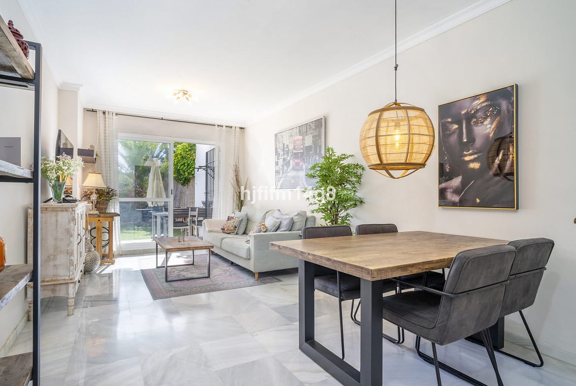 This is a 2-bedroom ground floor garden apartment. The apartment is in good condition with original kitchen which can easily be opened up if wished, dining and lounge area with direct access to the terrace. The terrace is an excellent spot as it offers full privacy and leads to the fully private garden overlooking La Concha mountain and the communal pool area. The master bedroom is spacious with en-suite bathroom and direct access to terrace. The guest bedroom is also of a good size and has a separate bathroom.