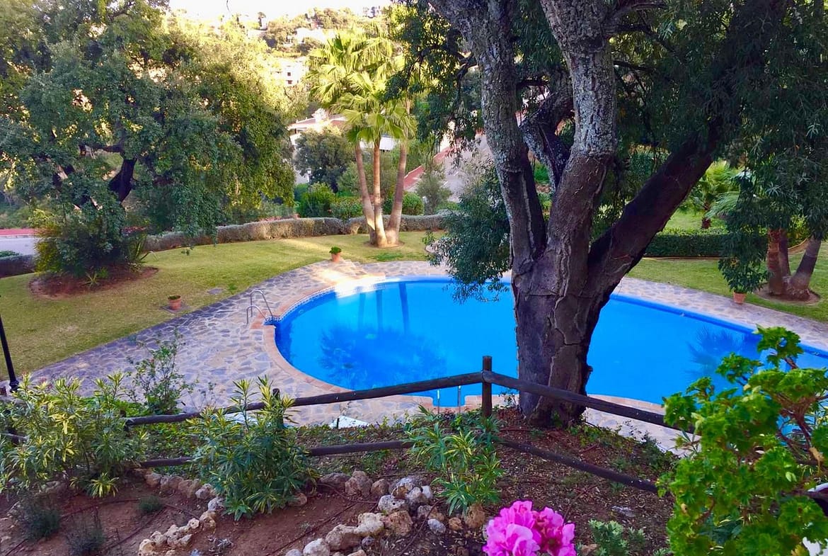 This elegant ground-floor apartment in La Mairena, East Marbella’s exclusive, UNESCO-protected area, offers stunning sea, mountain, and countryside views amid cork oak and pine forests.