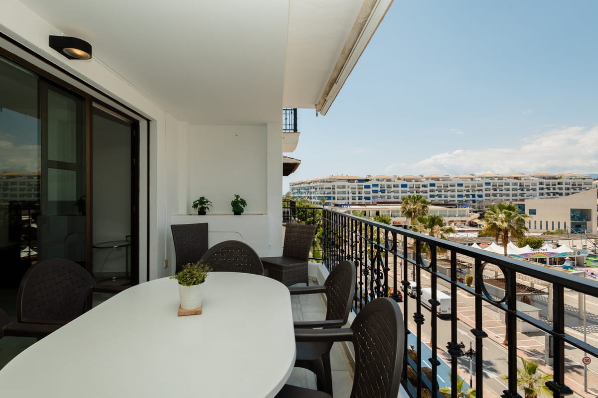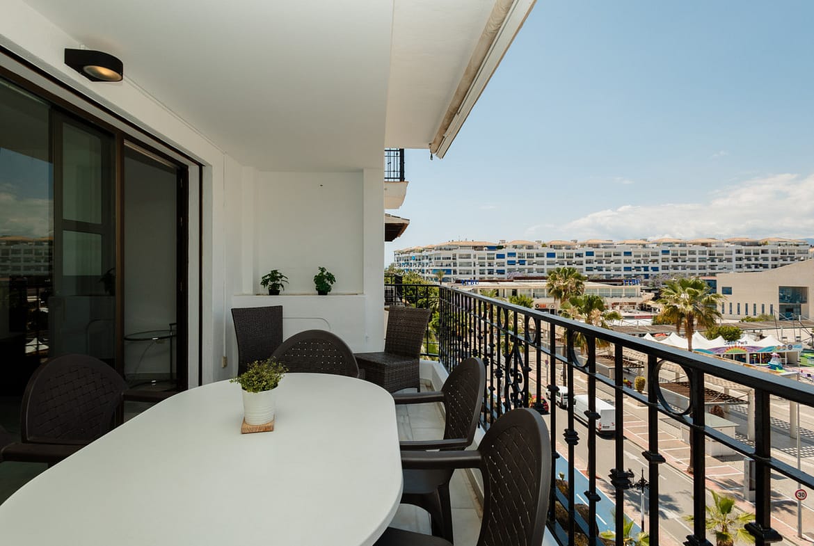 This 101m² apartment is located in one of the most exclusive areas of Marbella, ideal for 4 people. Just steps from the beach and marina, it features two bedrooms, a spacious living-dining room, a fully equipped American-style kitchen, and a private terrace with views of the mountains and the urban heart of Puerto Banús. Its privileged location makes it the perfect choice for an unforgettable vacation.
